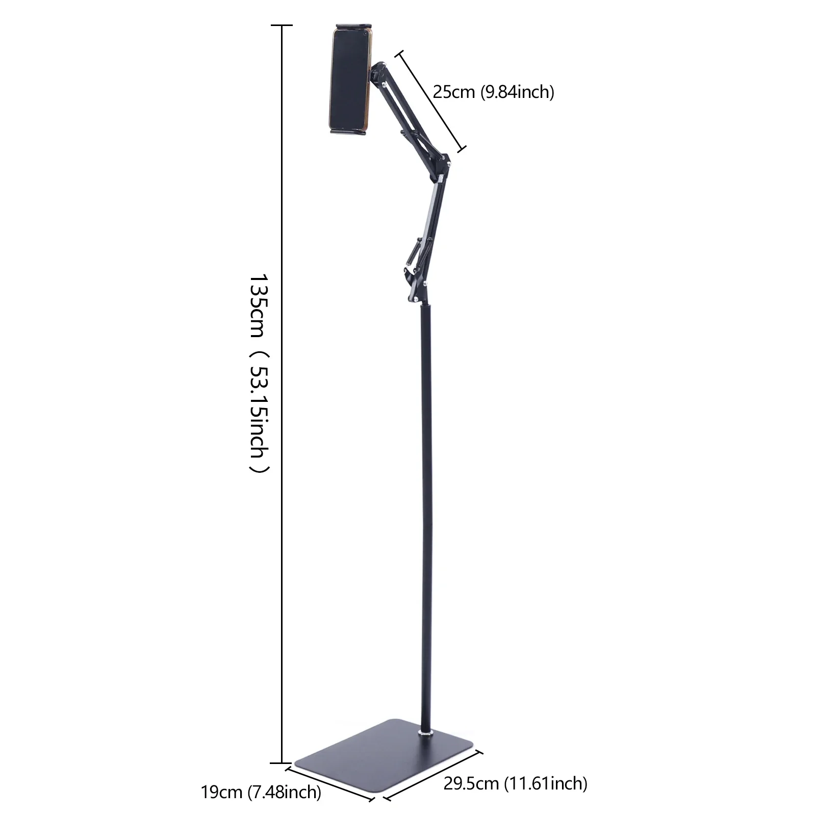1.35M Height Tablet Stand Tripod Floor Holder Adjustable Tablet Mobile Phone Mount Lazy Frame Enlarged Square Base