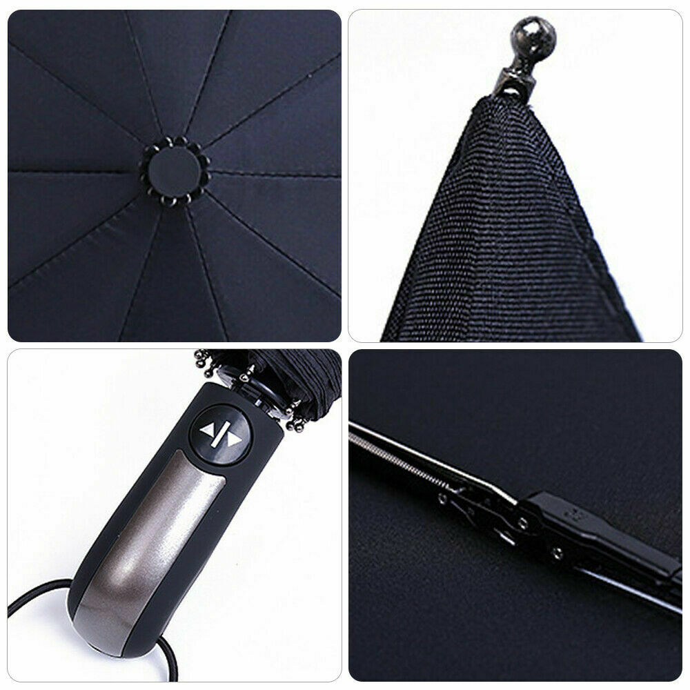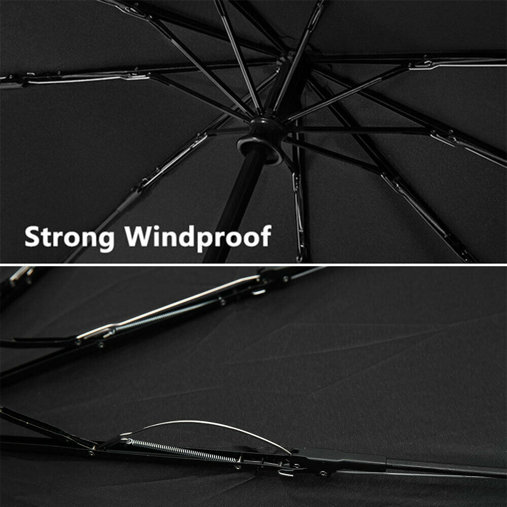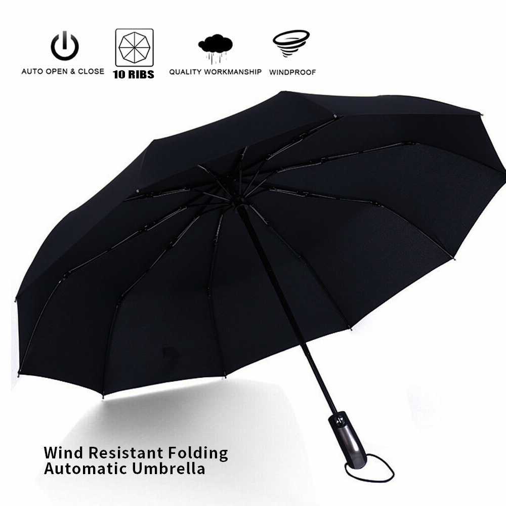 10 Ribs Strong Automatic Umbrella Auto Open Close Travel Compact Windproof Folding Umbrella Black