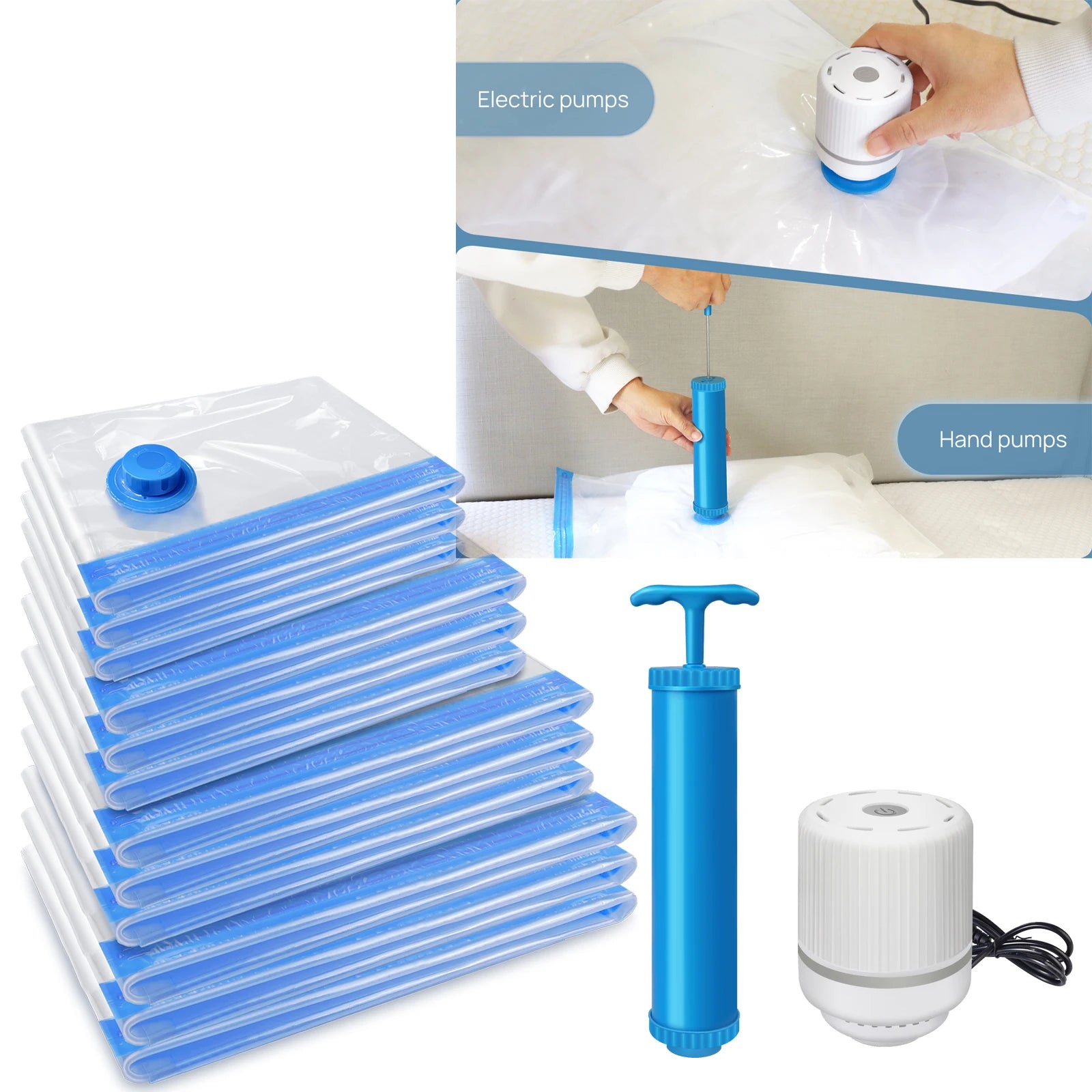 12-Pack Vacuum Compression Storage Bags for Clothes, with Electric Pump - Reusable Space Saver Bags for Travel, Duvets Storage