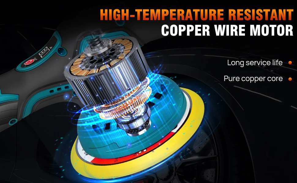 【PORTABLE CAR POLISHER】this cordless buffer only weight about 4.4 Ibs, which is high efficiency and portable to use both indoor and outdoors.
