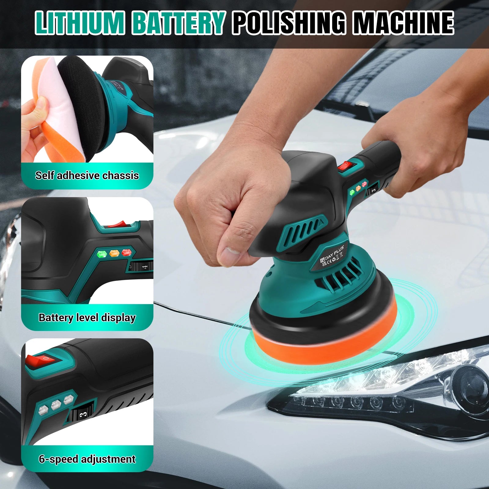 【STRONG POWER】the polisher machine can generate up to 5500RPM powerful power, to safely remove spin marks and scratches for your car finishes, easily complete waxing and polishing tasks,you can adjust the speed of the cordless car buffer polisher according to various needs to meet your needs.