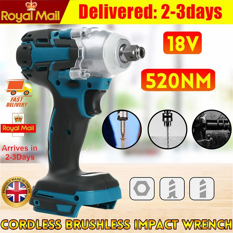 18V cordless electric wrench, 520NM brushless electric impact wrench, 1/2-inch screwdriver socket, Makita battery power tools