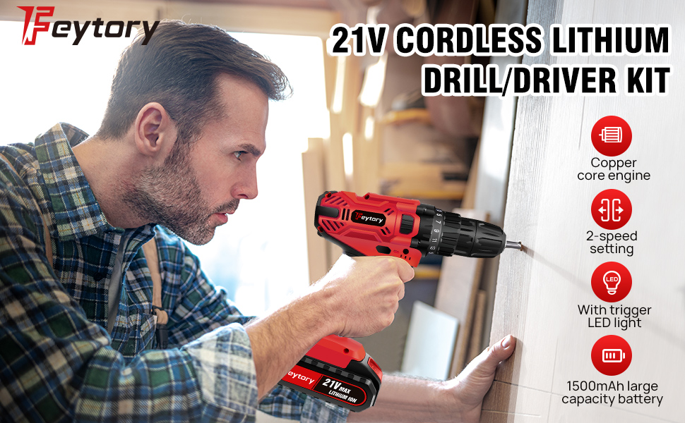 【What will you get?】The cordless drill set includes: 1 * 21V cordless drill driver, 29 * head accessories, 1 or 2 * 1500mAh lithium battery, 1 * charger, 1 * manual, 1 pair of gloves, 1 * portable box. Comes with a box that neatly stores drills and accessories, making it convenient for you to carry with you, allowing you to take tools to work, home, or outdoors! NOTE: The electric drill has undergone factory quality inspection. If there are any issues with the product, you can contact us immediately.