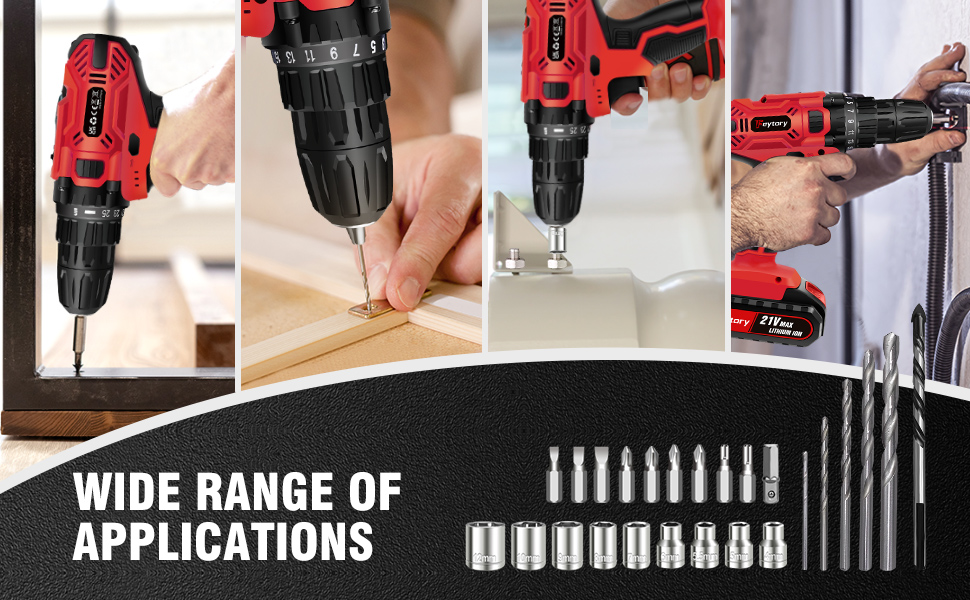 【Adjustable Speed】This cordless drill and driver has two drive units, 0-400 rpm and 0-1400 rpm, providing two speed performance options. You can choose different units according to different performance.25+1 torque setting allows you to perform precise operation, with a variety of built-in batch bits, to achieve 3-in-1 drill/screwdriver/wrench multi-functional electric drill. The powerful combination brings you higher working efficiency!
