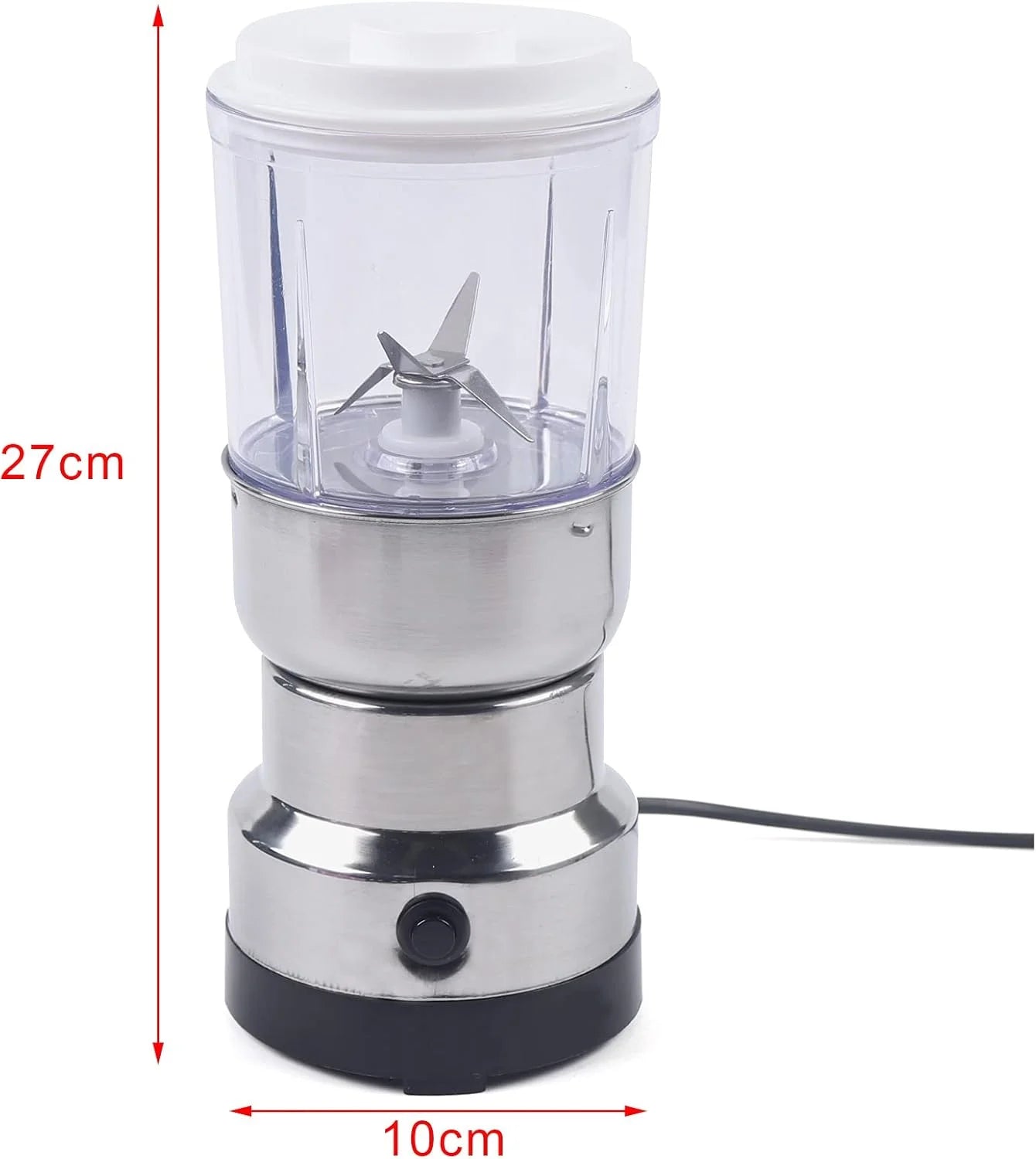 Package Included: 1 x Grinding Machine 1 x manual Features: High-quality material: 250W powerful motor ensure continuous and uniform grinding, thus well maintaining the original rich aroma and grease of coffee beans. Easy to use: Just press the on/button to start grinding, and release to stop. The operation is simple and no special training needed. It is more convenient to open the free gear cover and press the latest button! With ultrasonic driving force, the grinding speed is fast. When grinding Chinese medicine, the time should not exceed 3 minutes. You can set the time with timing switch. It has automatically stop grinding function, more convenient to use. You can grind pepper, chili powder, seasonings, etc. Juicing function: The grinder also comes with a juicer cup, convenient for you to make various juices. It can grind dry powder and squeeze juice, very convenient. The specially designed spice grinder occupies a very small space and is easy to store in a cabinet or drawer. The low-noise motor allows your family to fall asleep quietly while preparing breakfast. Specifications: Material: food grade stainless steel + food grade PP Color: silver Speed regulation gear: 3 gear Grinding cup capacity: 150ml Juice cup capacity: 350ml Rated voltage: 220 (V)~ 240 (V) Rated frequency: 50 (HZ)/60 (HZ) Power: 300W Speed: 11000 Product size: about 11x11x32cm/4.33x4.33x12.6in