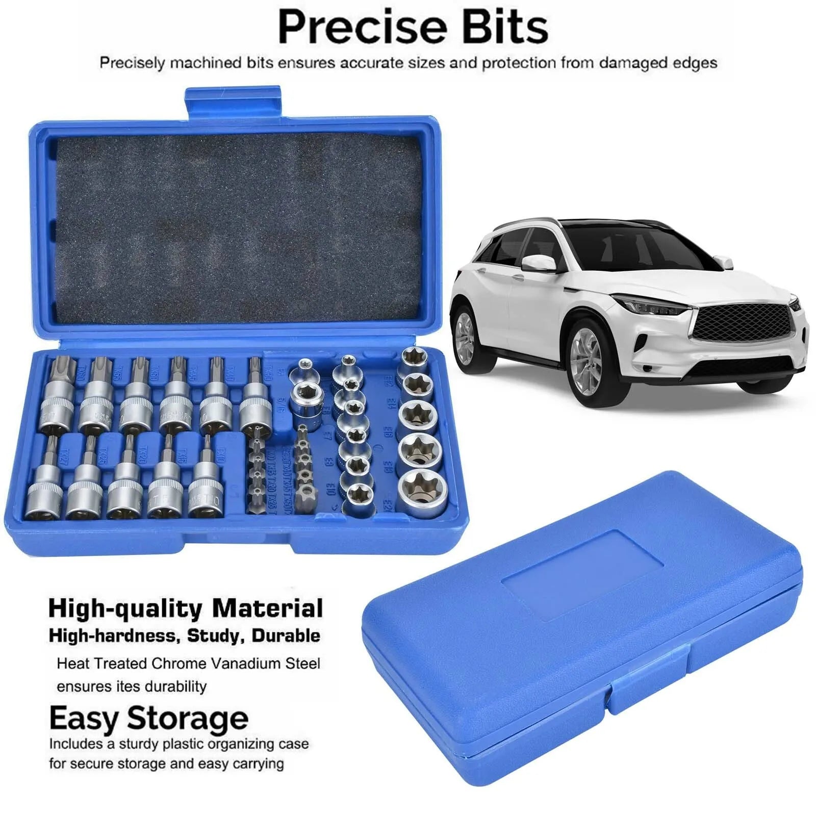34PCS Drive Male Female Torx Torque Tork Star Bit Chrome Repair Sockets Auto Kit
