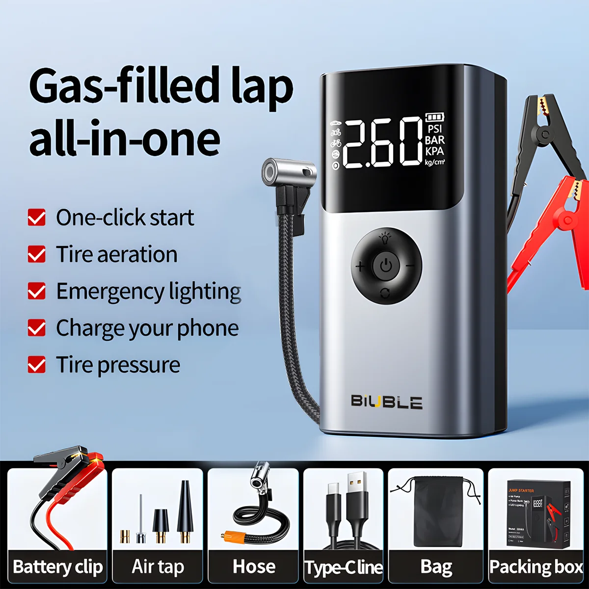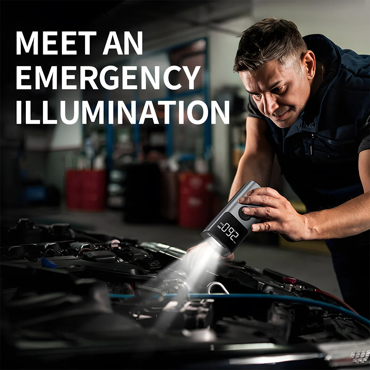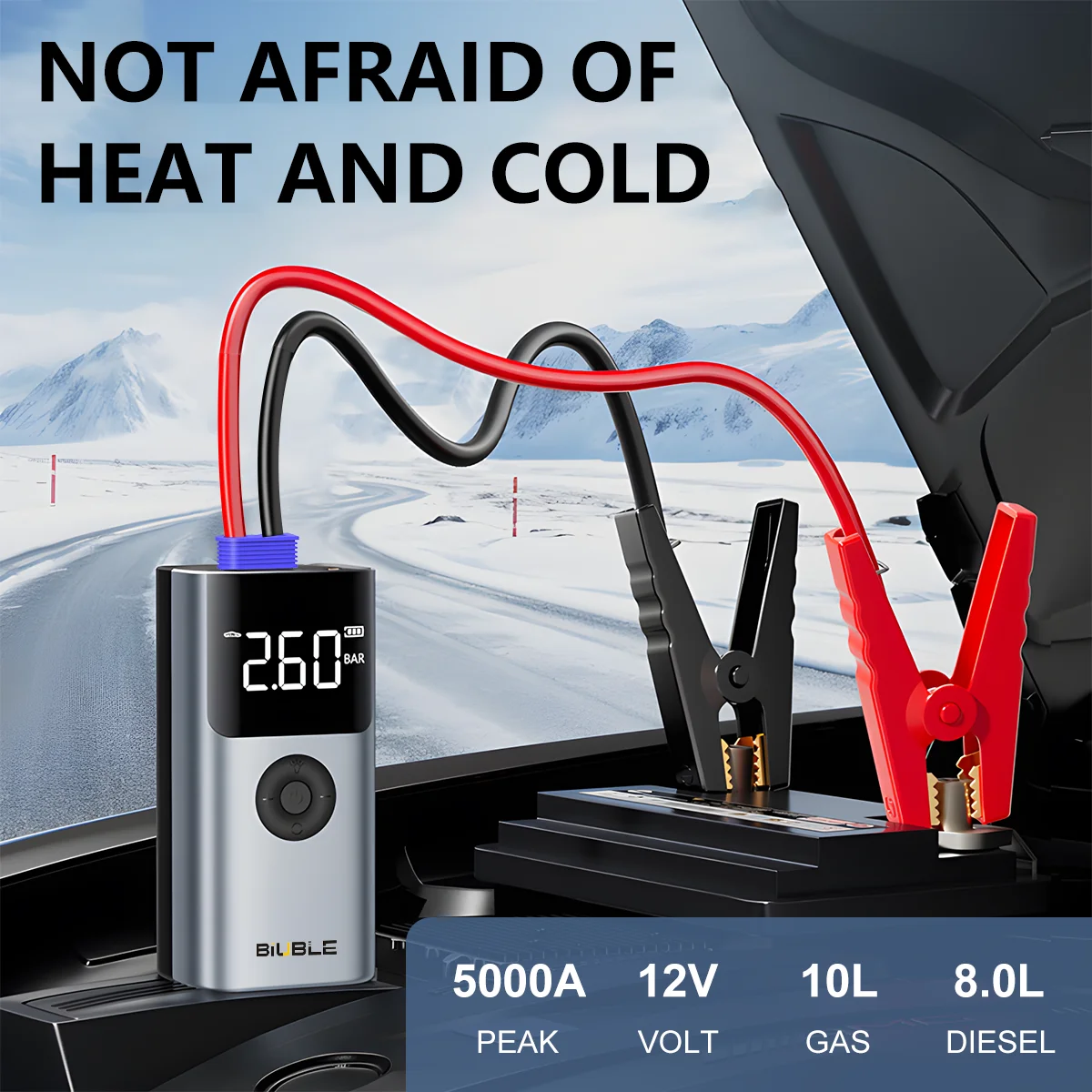 4 In 1 5000A Car Jump Starter 150PSI Air Pump 12V Battery Booster for 8.0L Gasoline and 6.0L Diesel Engines