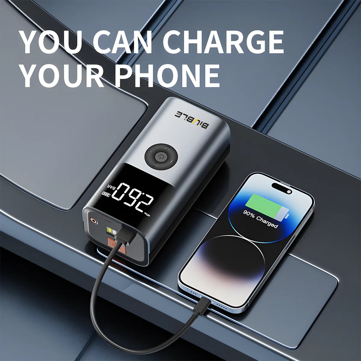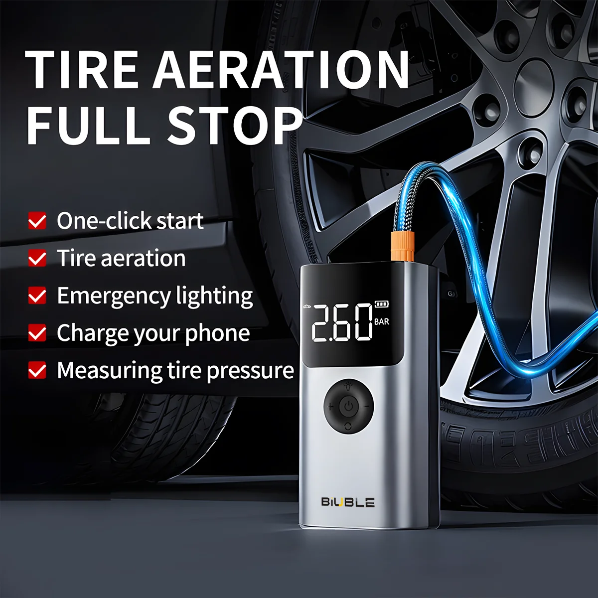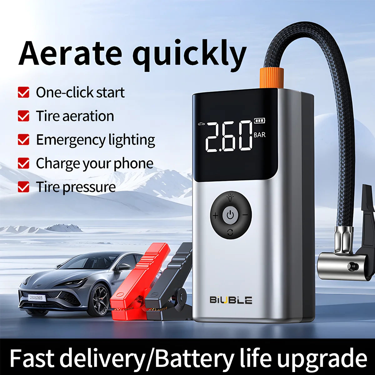 4 In 1 5000A Car Jump Starter 150PSI Air Pump 12V Battery Booster for 8.0L Gasoline and 6.0L Diesel Engines