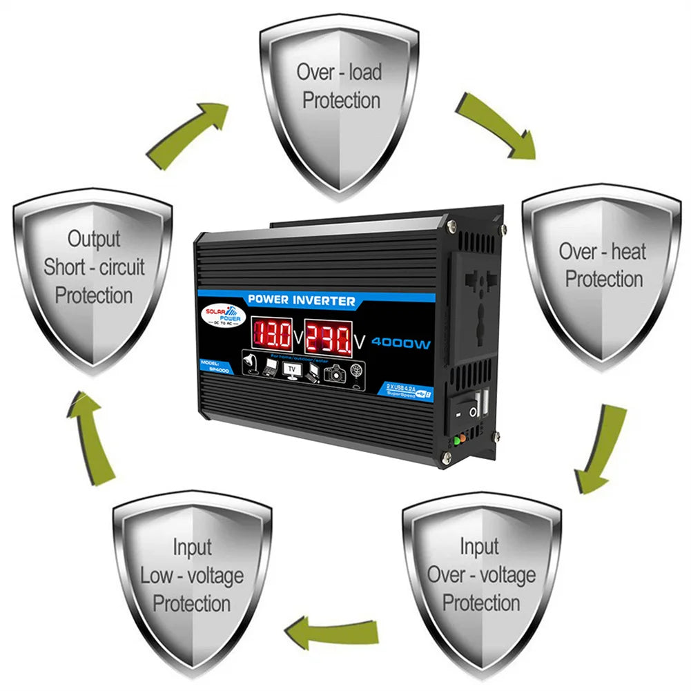 4000W Car Power Inverter DC 12V to AC 220V/110V Dual LCD Digital Display Voltage Transformer Car Charger Converter Adapter