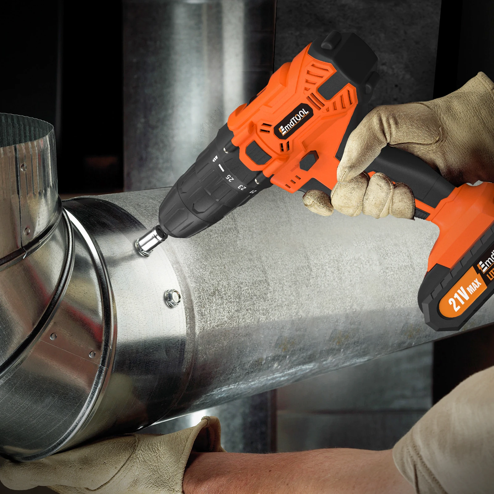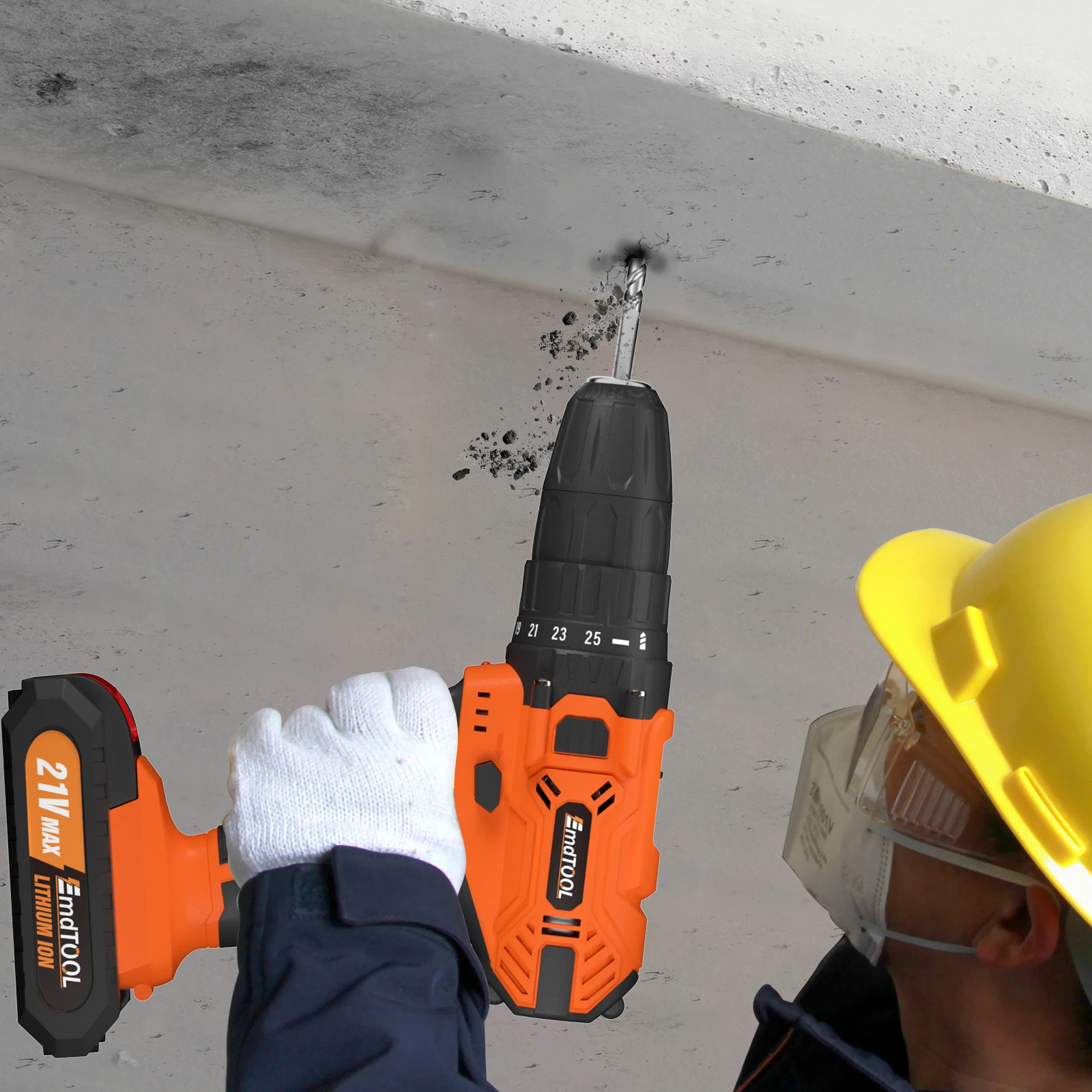 2. Variable Speed & 25+1 Torque: This 21V power drill has 2 variable speed and unique electric safety brake system. The impact drill is combined with 25+1 torque settings, enables smooth drilling into a variety of materials, such as wood , brick and metal.
