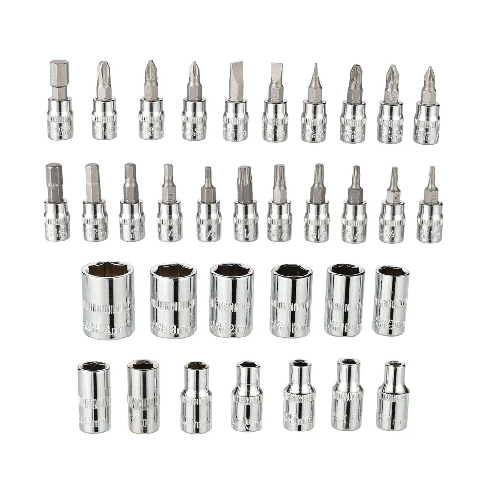 46PCS Socket Set Car Metric Socket Ratchet Wrench Set CRV Steel Torx Wrench Bits Screwdriver 1/4" Drive Car Vehicle Repair Tool