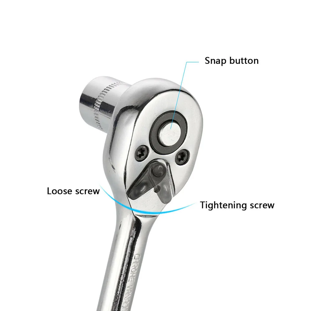 3. Rapid fall off ratchet wrench (positive and negative adjustable), The push button quick release feature ensures taht the socket is locked securely while in use, but also allows for easy removal or quick change of socket evev with greasy or oily finger. and our high quality 45 teeth ratchet can improve the operation speed. Is open throttle, in air conditioning, seat nut, tire fenders, car door locks, home (basic contains) usually used in the suit small screw nut the ideal of a set of tools.