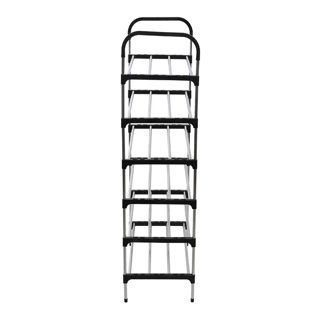 A tiered shoe storage floor standing shoe rack is perfect for all homes and is a great option for keeping any room tidy. Featuring a minimalism style, it has a tubular metal frame that is lightweight yet strong, making the rack easy to move and very durable. The slatted design of the shoe rack provides ventilation for your shoes, keeping them dry and odorless. Easy to install, no additional tools required.