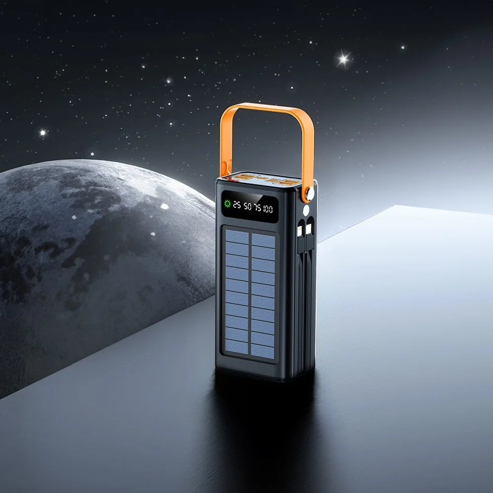 50000mAh Solar Panel Power Bank Fast Charging Comes with Four Wire External Battery Pack Large Capacity Mobile Power