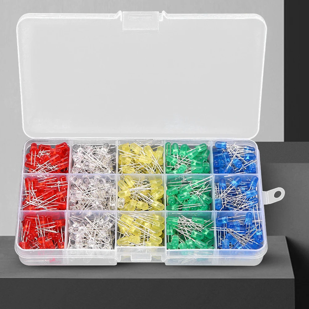 500Pcs LED Light-Emitting Diode Red Yellow Blue Green White 5MM Luminous Diode Kit 100Pcs/Color Luminous Diode Assorted Kit LED