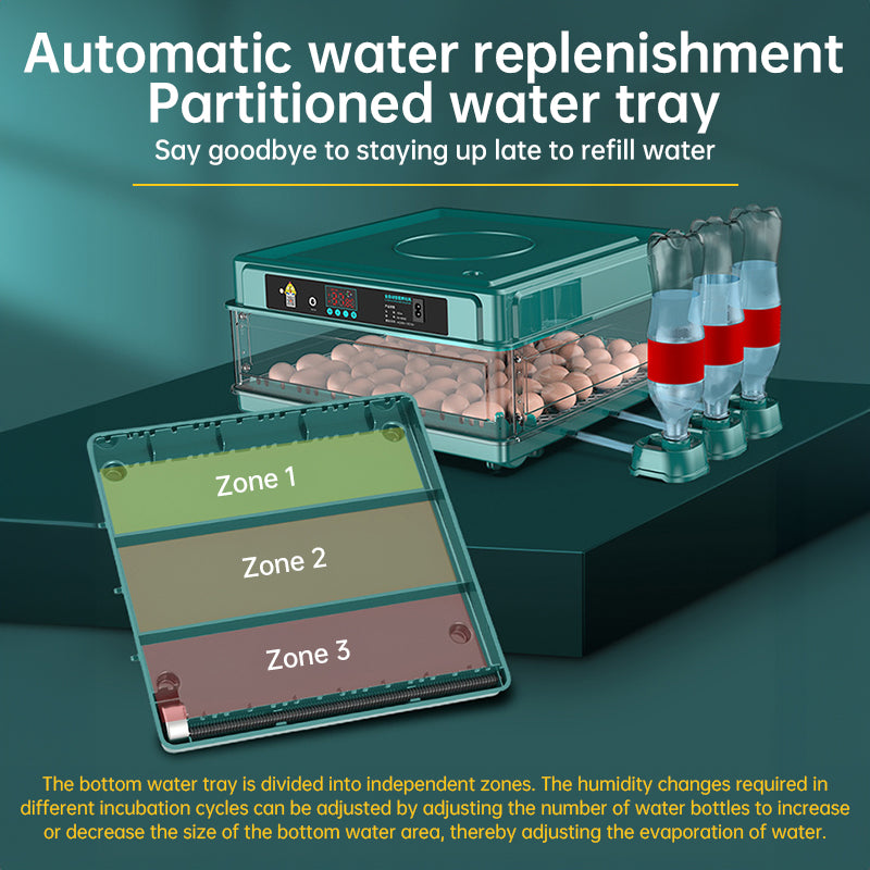 - Automatic Hydration: Ensures proper moisture levels for the eggs.