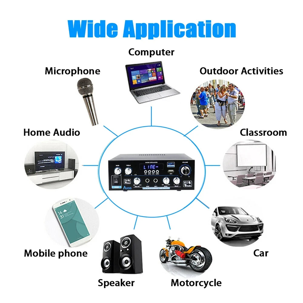 AK55 HiFi Digital Amplifier Channel 2.0 Bluetooth Surround Sound AMP Max Power 90Wx2 Speaker for Home Car BT 5.0 Audio AMP