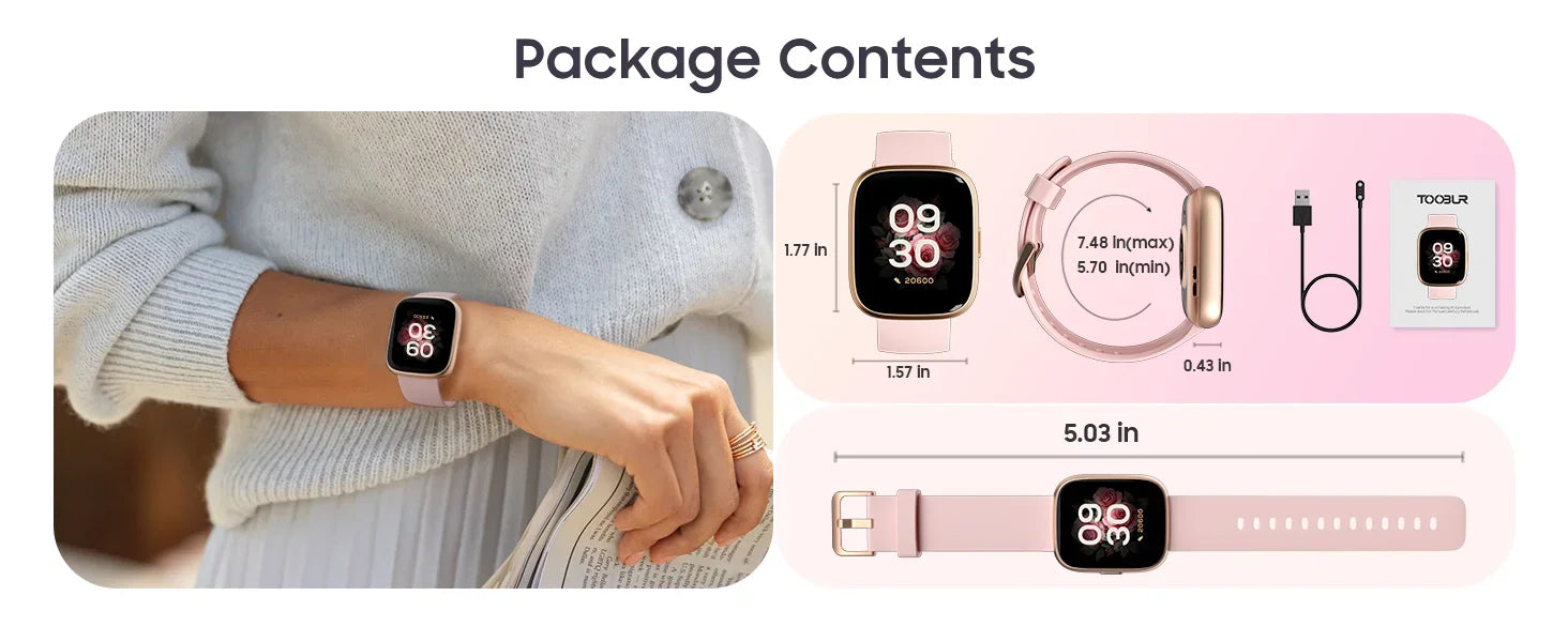 Alexa Built-in TOOBUR Smart Watch Heart Rate Monitor Sleep Tracker Pedometer IP68 Waterproof Smartwatch Compatible Android iOS