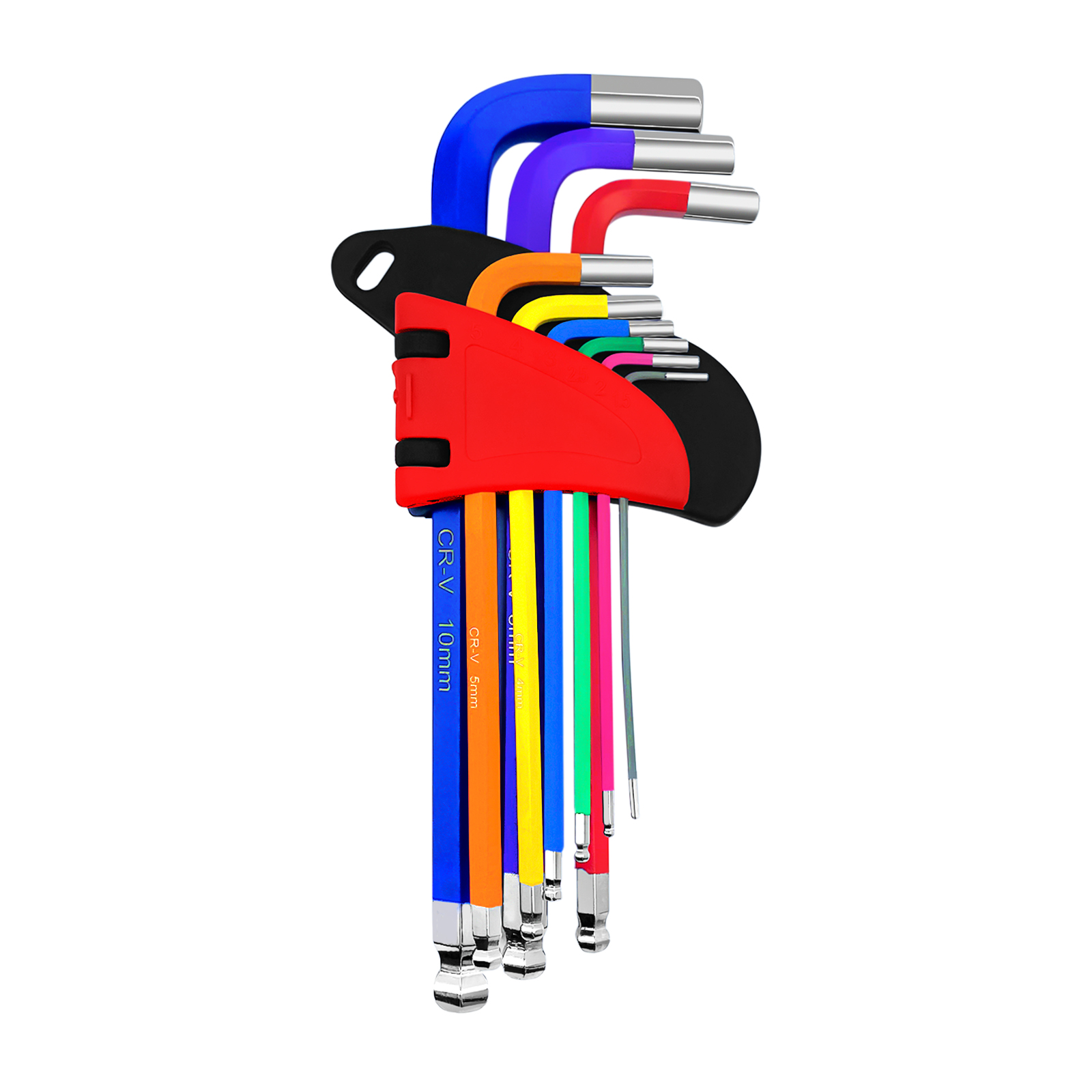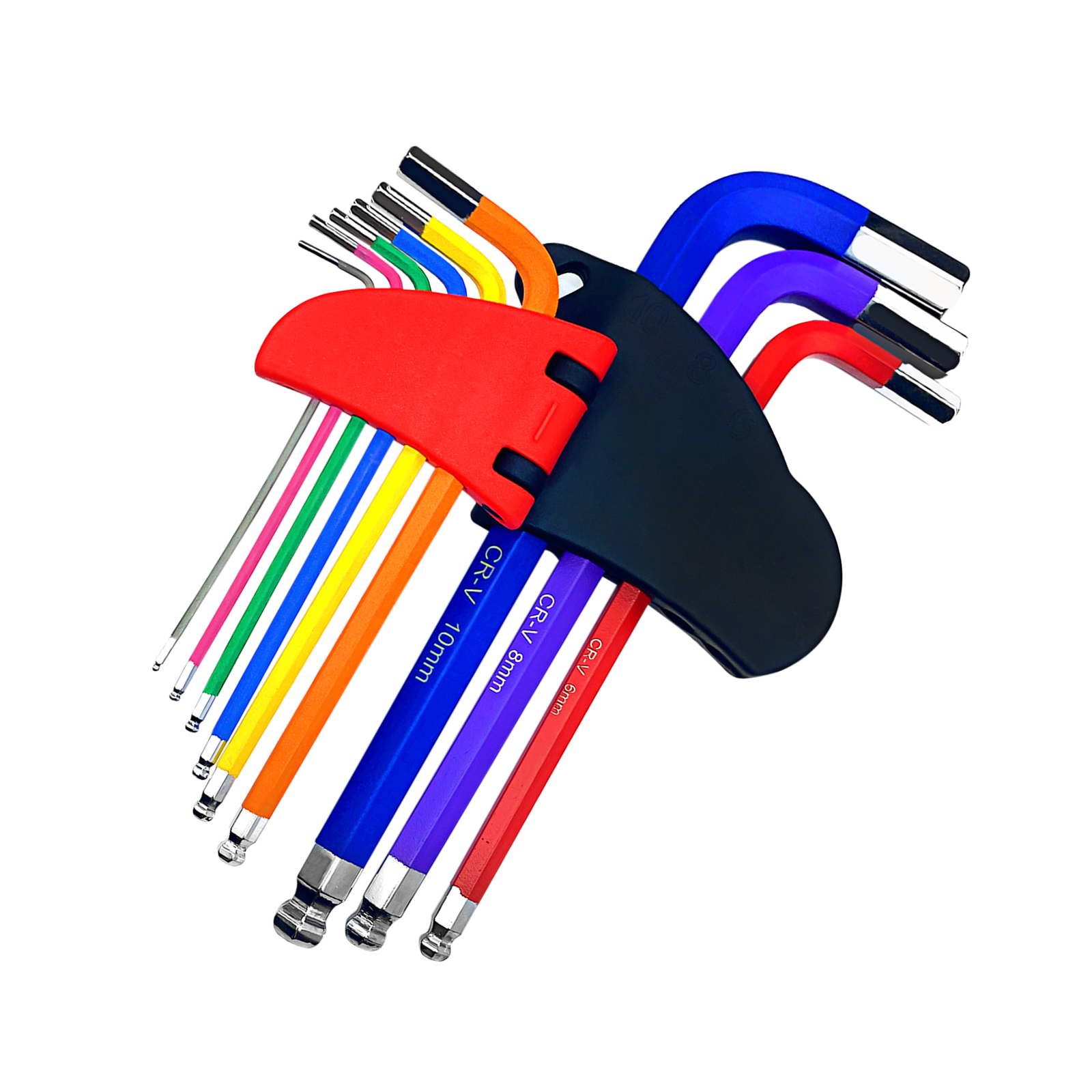 Allen Key Set Socket Folding Wrench Hex Metric 9Pcs/Set Ball End Long Wrench Colour Coded Alan Keys 1.5mm - 10mm