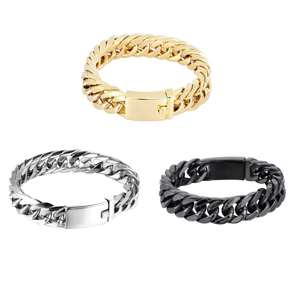 Alloy Chain Bracelet Streetwear Jewelry Fashion Men Bikers Bracelet with Buckle Solid Color for Gift for Party Wedding Travel