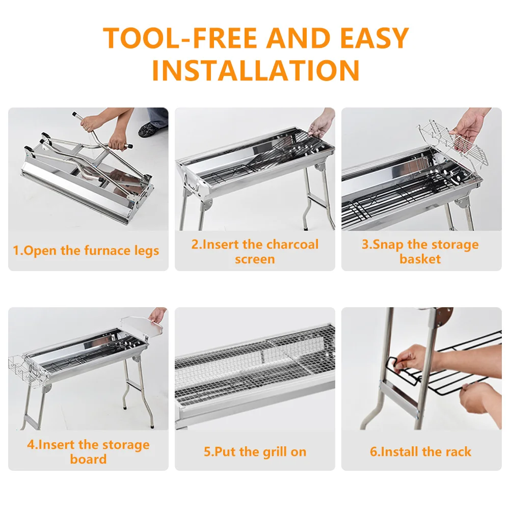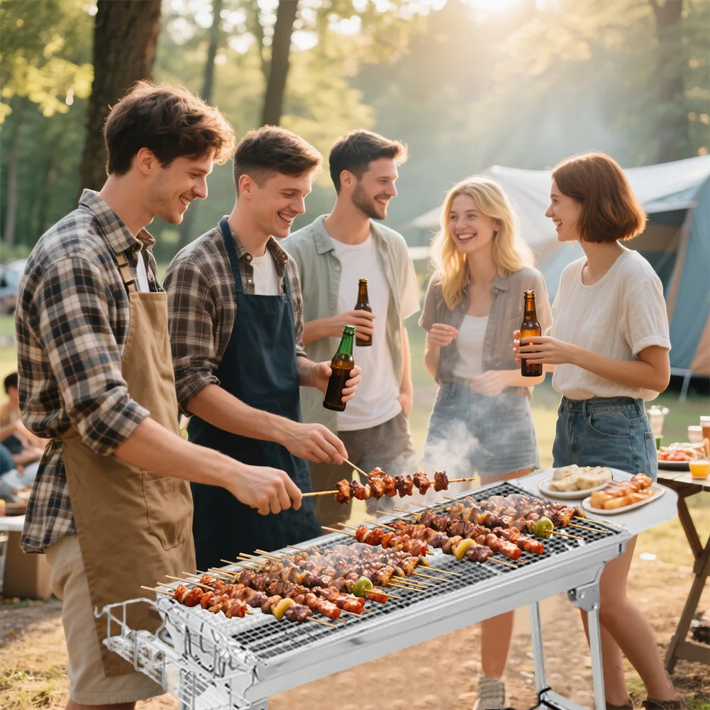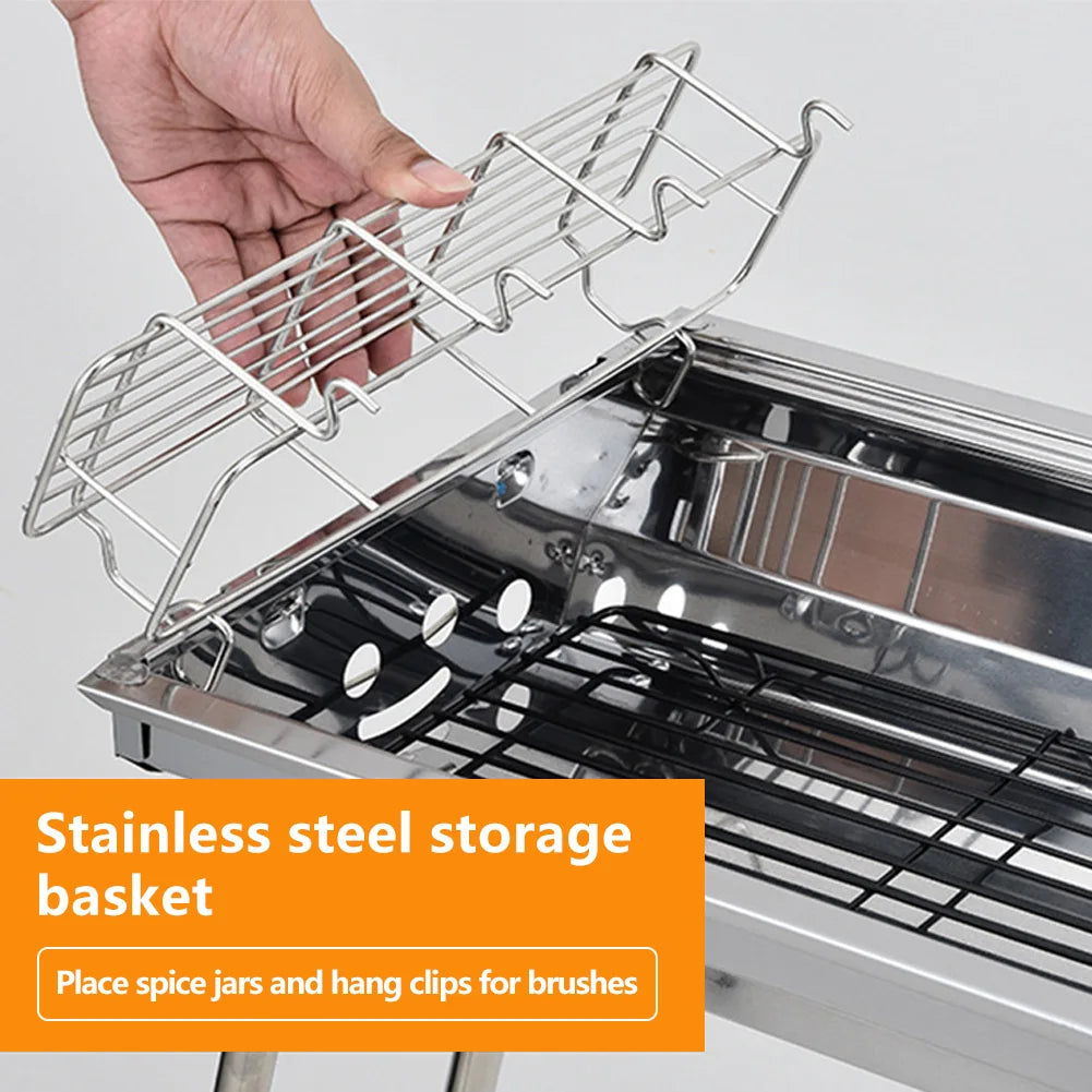 Barbecue Grill, Stainless Steel BBQ, Large Folding Portable BBQ Grill, Charcoal Grill for Outdoor Cooking Camping Hiking Picnics