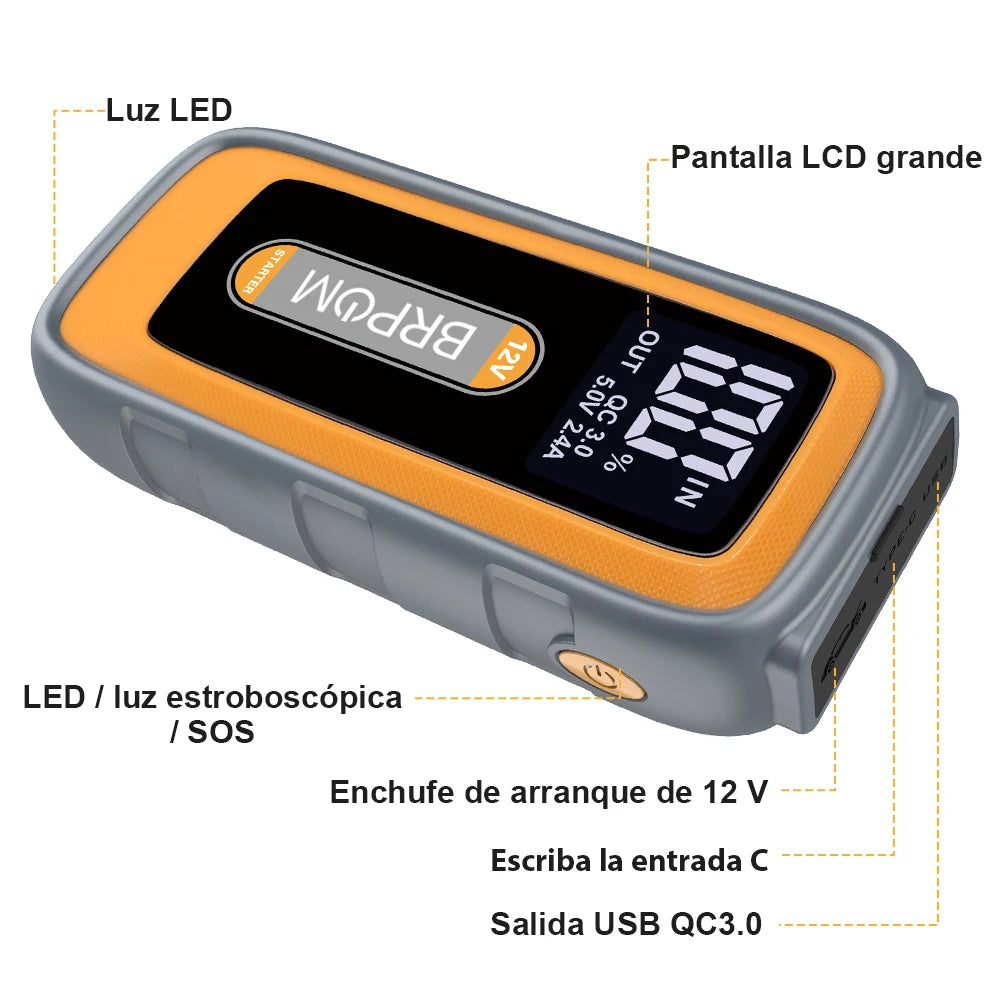 Car Jump Starter 6000A Peak 12V 26800mAh Automatic Portable Car Jump Starter Battery Pack with Smart Jumper Cable and LED Light