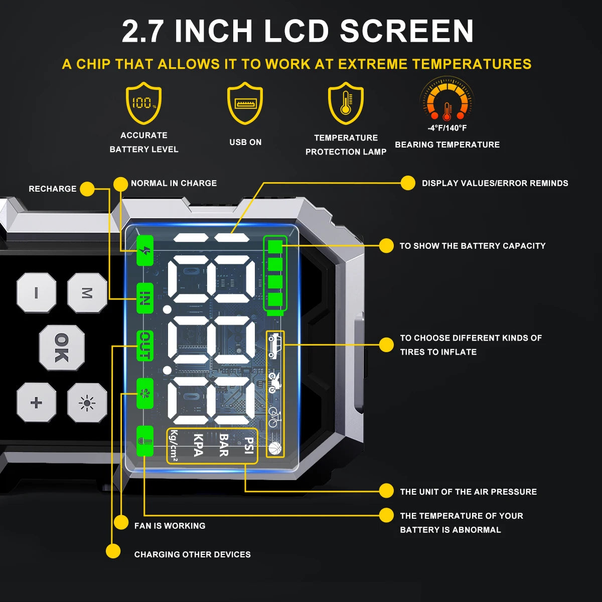 Feature 18: Car Jump Start Air Compressor 26800mAh
