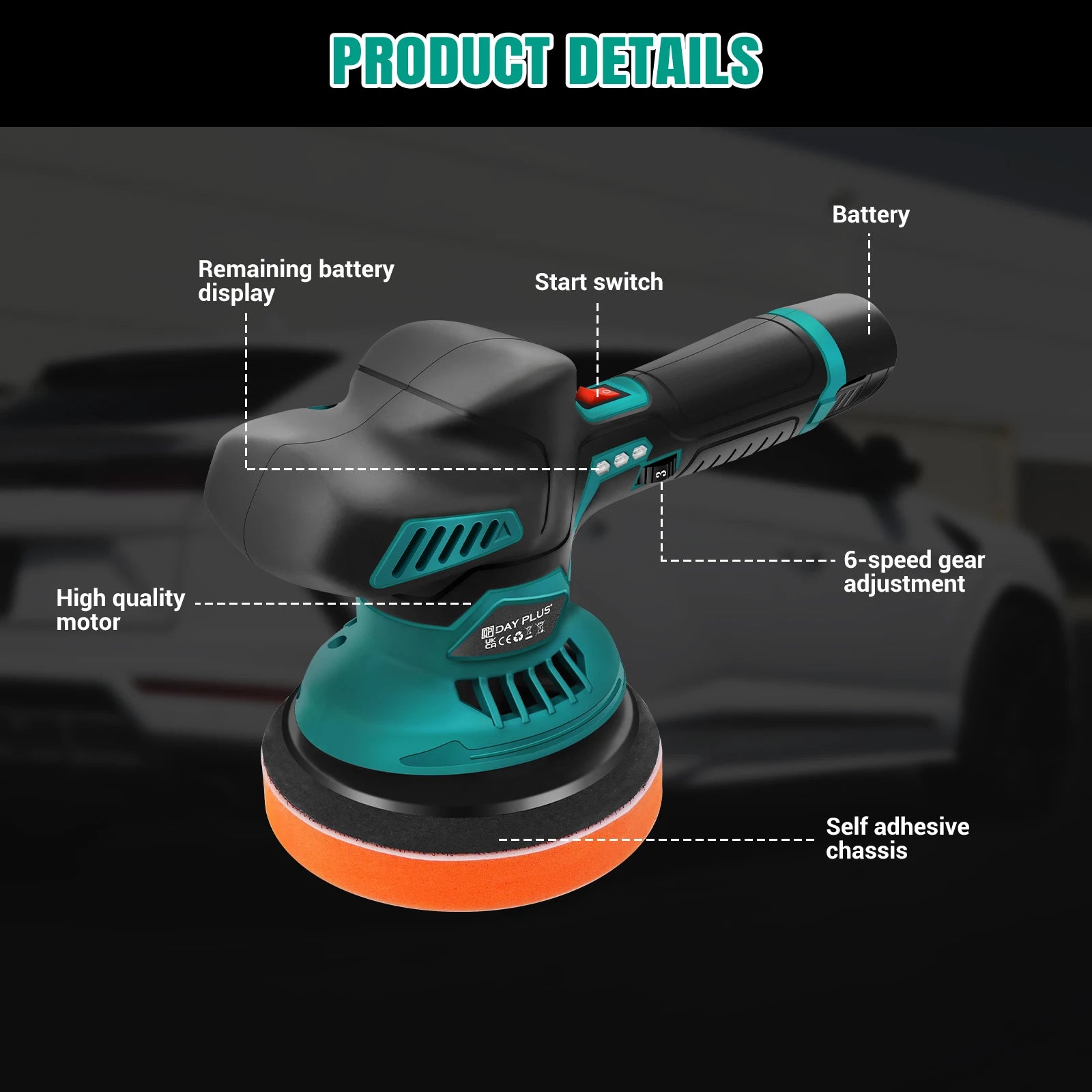 Cordless Car Buffer Polisher, Electric Polishing Machines Car Buffers and Polishers Kit,8 Variable Speed ,2*12V 2.0Ah Batteries