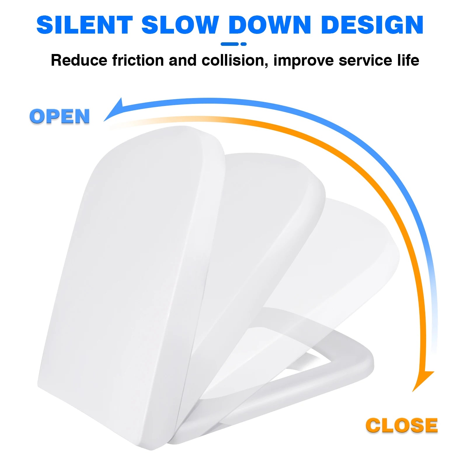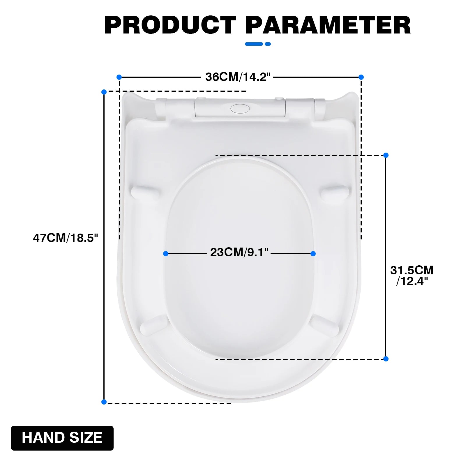 - Our toilet seat is suitable for most toilet seat, such as hanging toilet, rimless toilet, etc. It uses high-quality urea-formaldehyde resin material, which meets the requirements of environmental protection and degradability. Thanks to the automatic lowering technology, toilet lids avoid noise caused by the lids suddenly falling, thus prolonging the service life of the toilet lids. Thanks to the quick-release function, the toilet seat can be removed and put back on again. The simple design in white blends in perfectly with any bathroom furnishings or in any guest toilet.