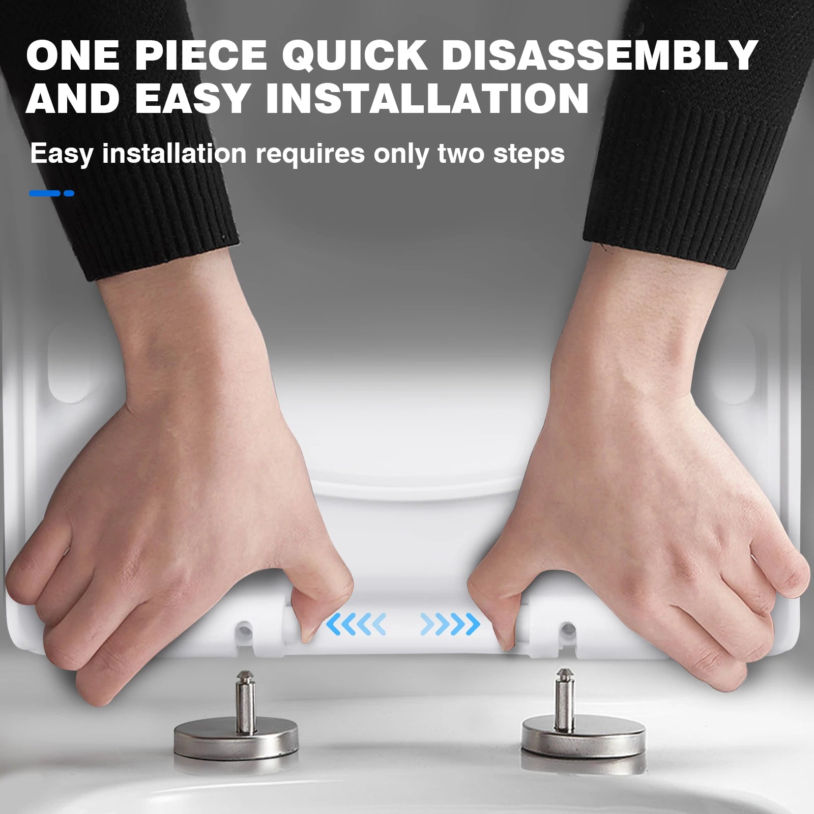 Just let go of the seat or lid and it will close softly without any noise. Anti-slam technology also ensures there are no more trapped fingers! With One Push Button Release, you can easily remove and re-install the seat for easy cleaning.