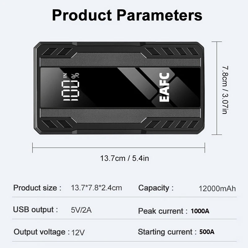 EAFC 1000A/1200A Jump Starter Power Bank Portable Charger Starting Device for 3.0L Emergency Car Battery Jump Starter