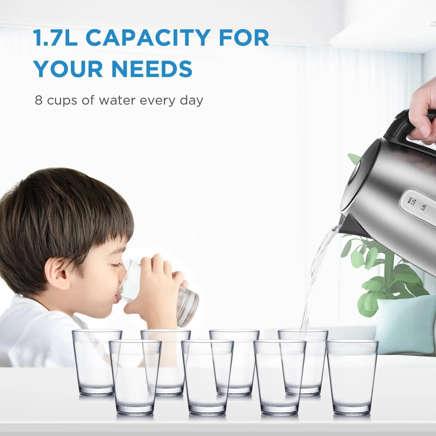 Electric Kettle 3000W Fast Boil 1.7L Stainless Steel Kettle with LED Indicator,Water Level Indicator, Dry Burn Protection