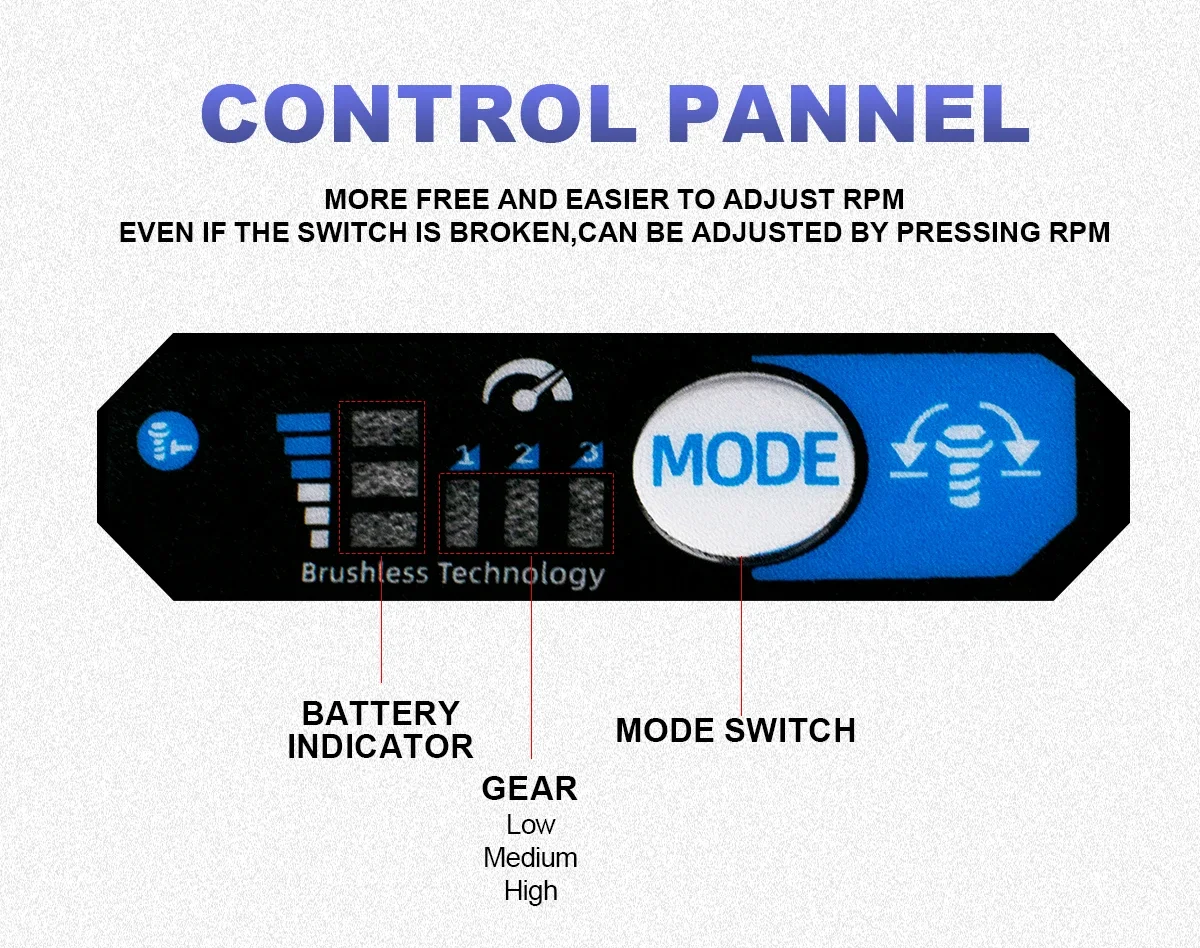 -The brushless motor does not generate sparks when it is working, and the motor does not wear.