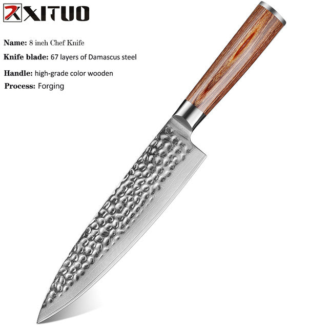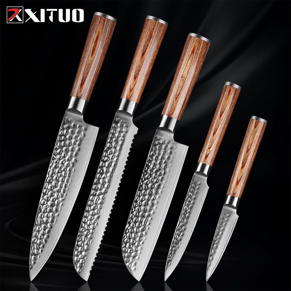 Gold Color Wooden Handle Hammer Pattern Damascus Kitchen Knife Kitchen Knife Set Bread Knife Fruit Knife Household Chef Knife