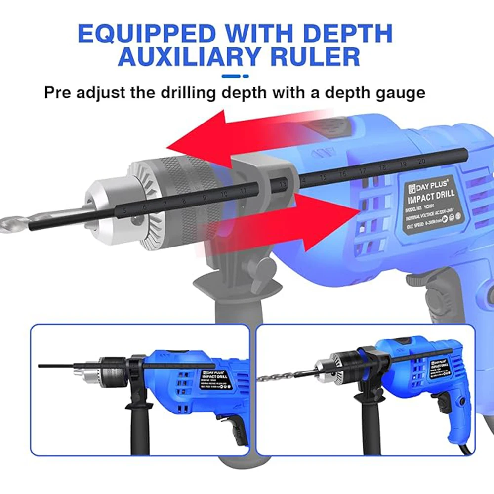 【13mm Chuck, 360° Rotating Handle & Depth Gauge】Its keyed chuck is suitable for drill bits with diameter (≤13mm) to meet your requirements for different drill bits. Anti-skid auxiliary handle can rotate 360 degrees, making drilling comfortable and convenient; Thoughtful depth gauge makes your drilling more accurate.