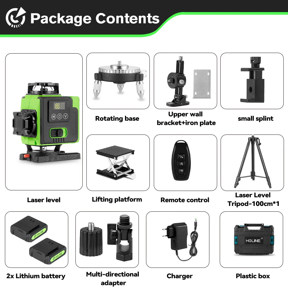 HGLINE 16 Lines Laser Level APP Remote Control Horizontal Vertical Levels Machine Power Display Laser Leveling With 100cm Tripod