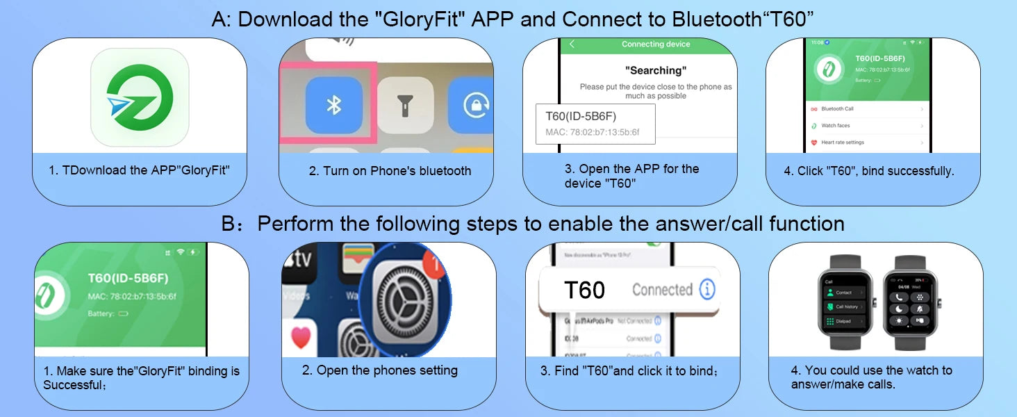 By syncing to the mobile phone app "Gloryfit", you can know the sleep status (deep sleep/light sleep/wakeful sleep), and cultivate better sleep habits and a healthier lifestyle through the smartwatch.