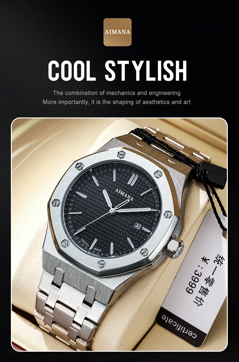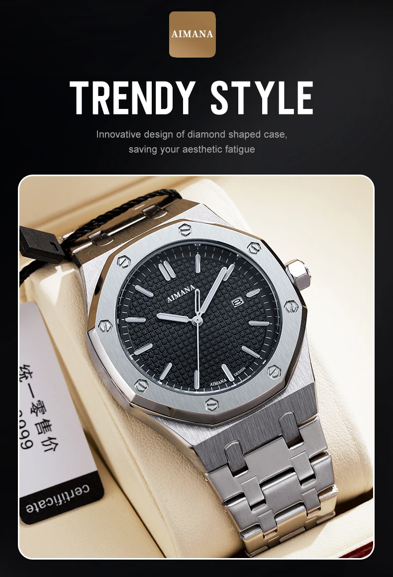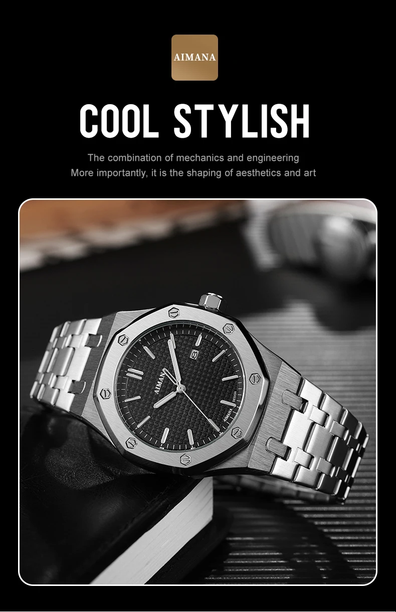 The robust stainless steel band offers durability and a sleek look, perfect for business settings.