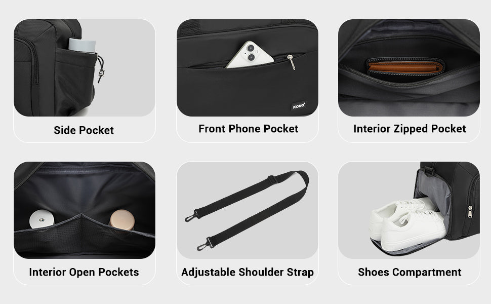 Water-Resistant Gym Bag for Men and Women: The Kono Sports Duffel is crafted with waterproof materials, ensuring your gym essentials stay dry in any condition. Designed as a versatile gym bag for men and women, it’s suitable for sports, travel, or daily use, offering reliable protection for your belongings.