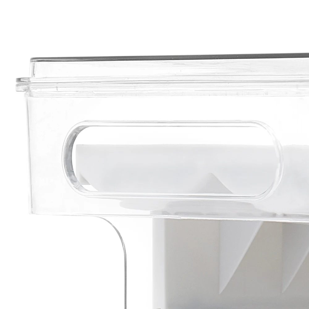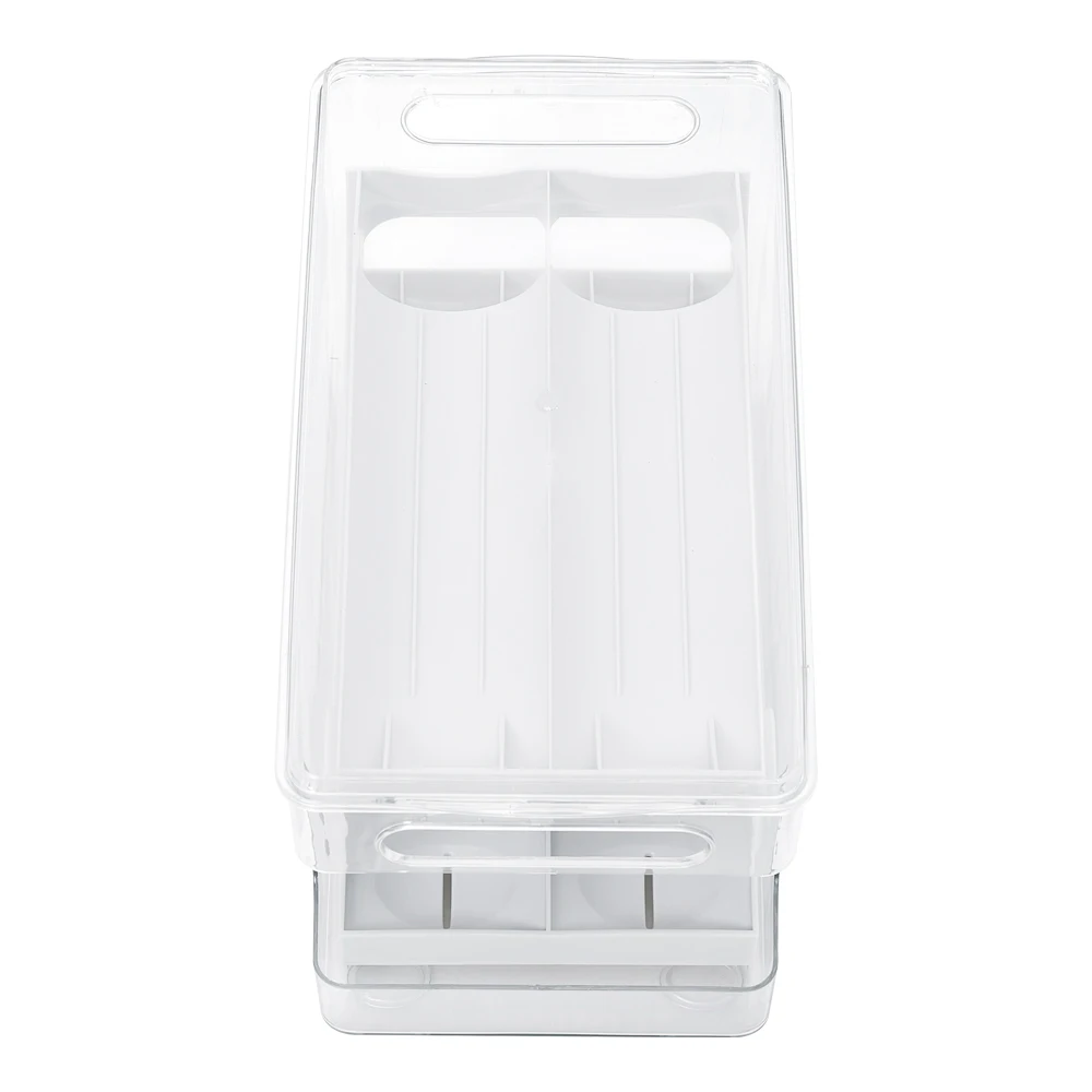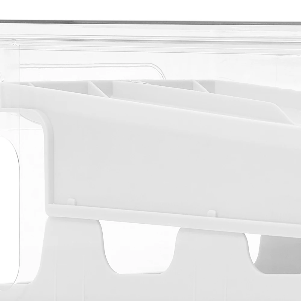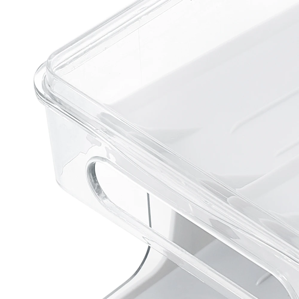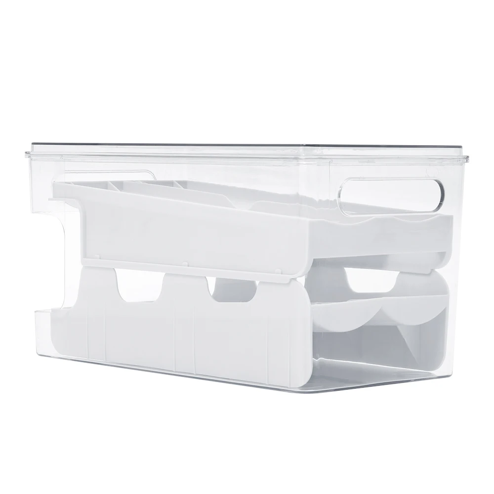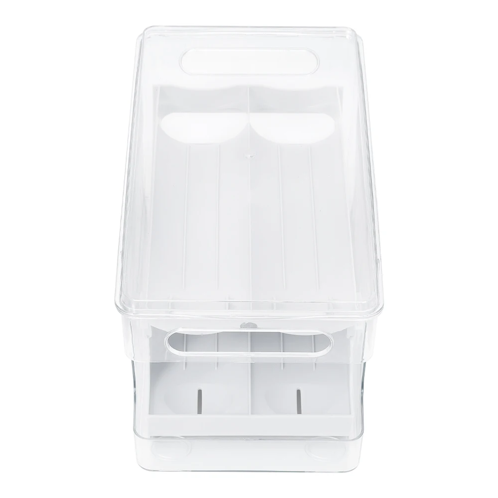 Bid farewell to all your egg storage woes with this 2-layer egg holder. Specifically designed to optimize refrigerator space, it neatly organizes eggs for easy access. Equipped with a rolling mechanism, even the eggs at the very back can be effortlessly retrieved. The transparent design allows you to instantly see the quantity and condition of the eggs, making it convenient to replenish your supply anytime. Furthermore, the spacious opening design not only facilitates easy retrieval but also ensures proper ventilation inside, keeping the eggs fresh. With its thoughtful design and practical features, this double-layer egg holder is sure to become a staple in your kitchen, bringing convenience to your fridge egg storage.