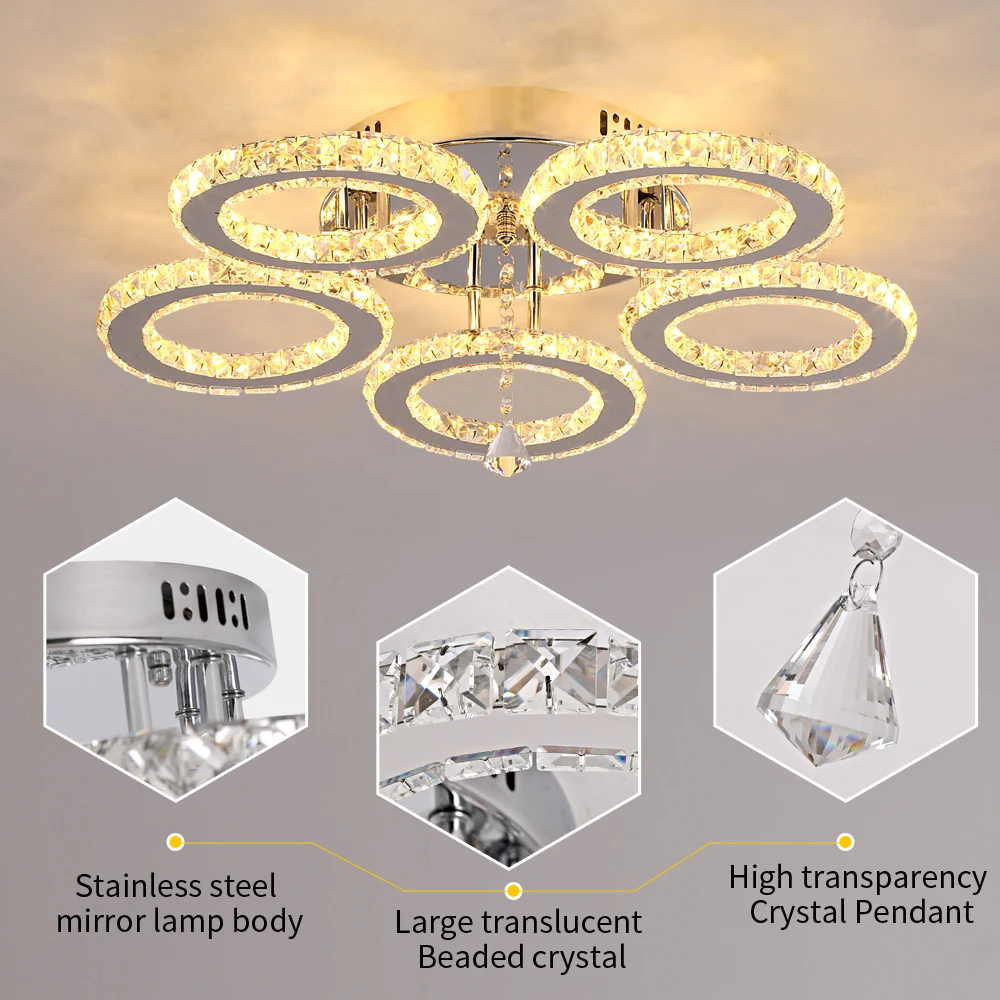 Modern Crystal LED Chandeliers Lighting Chrome Plafon Lustre Luminaire 30W Led Hanging Ceiling Lamp Plafon Lamparas De Techo