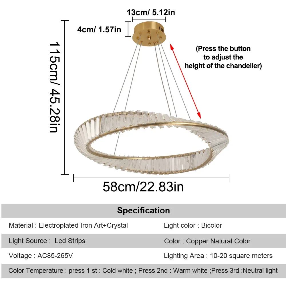Modern Pendant Light Crystal Led Ceiling Lamp Gold Chandelier Möbius Strip Lustre Luxury Living Dining Room Home Decor Fixture