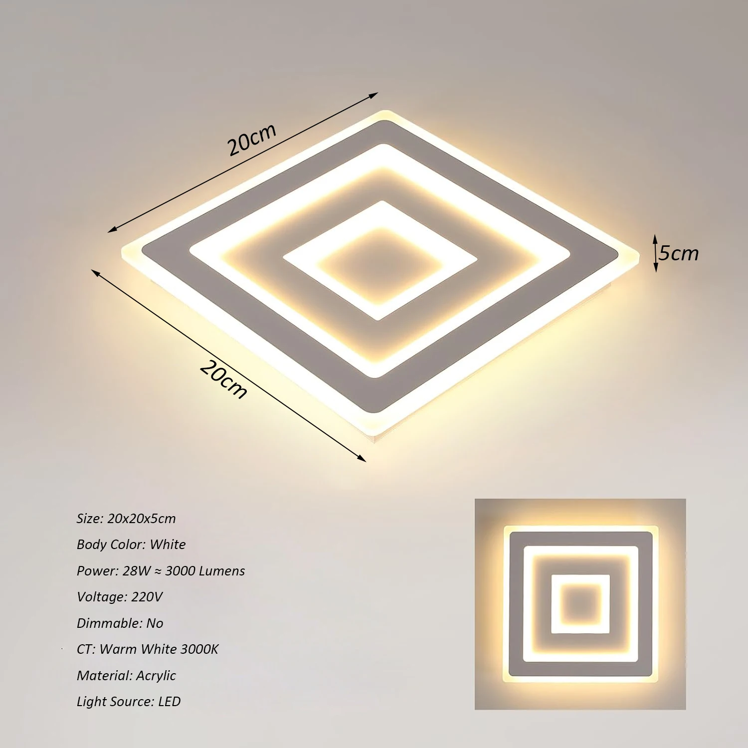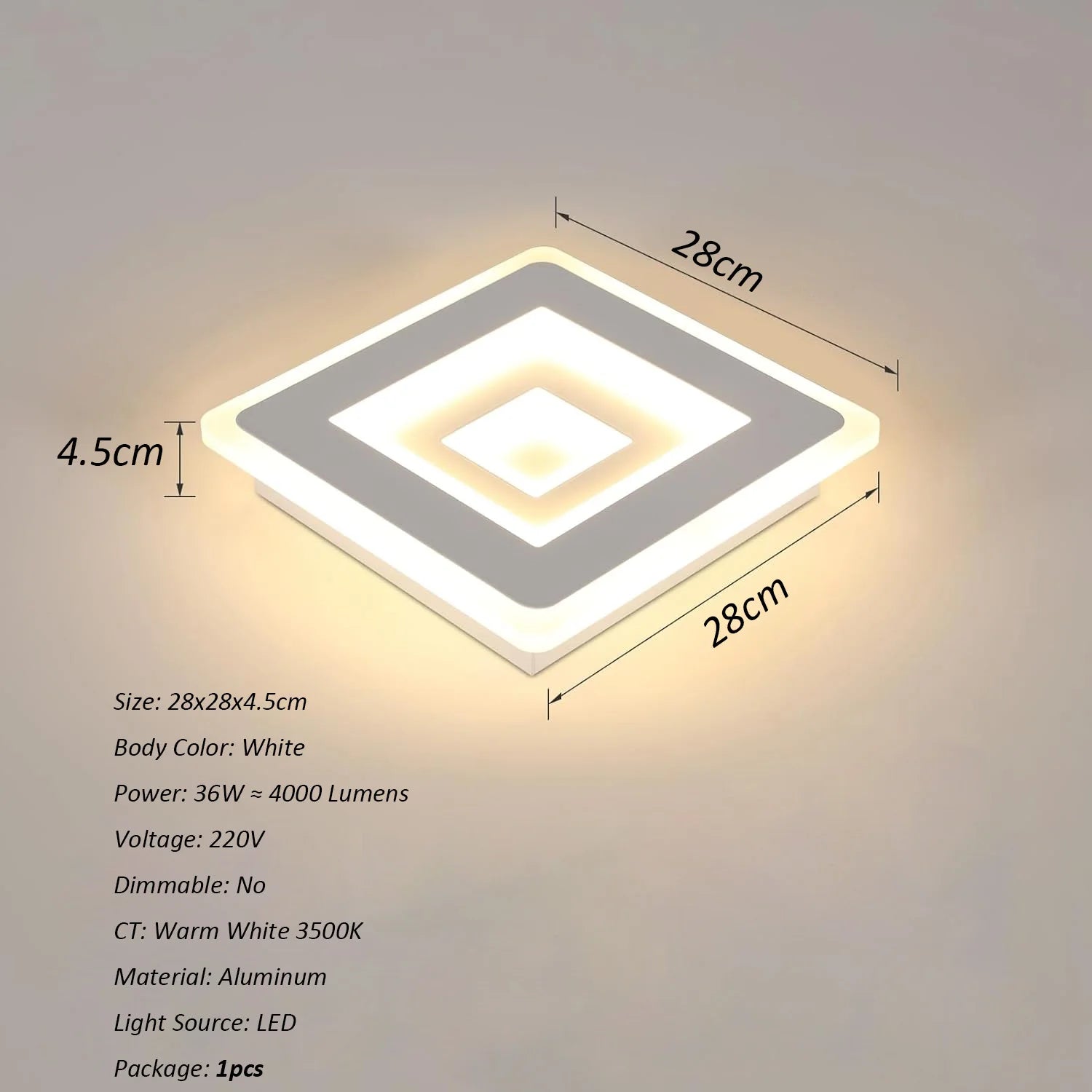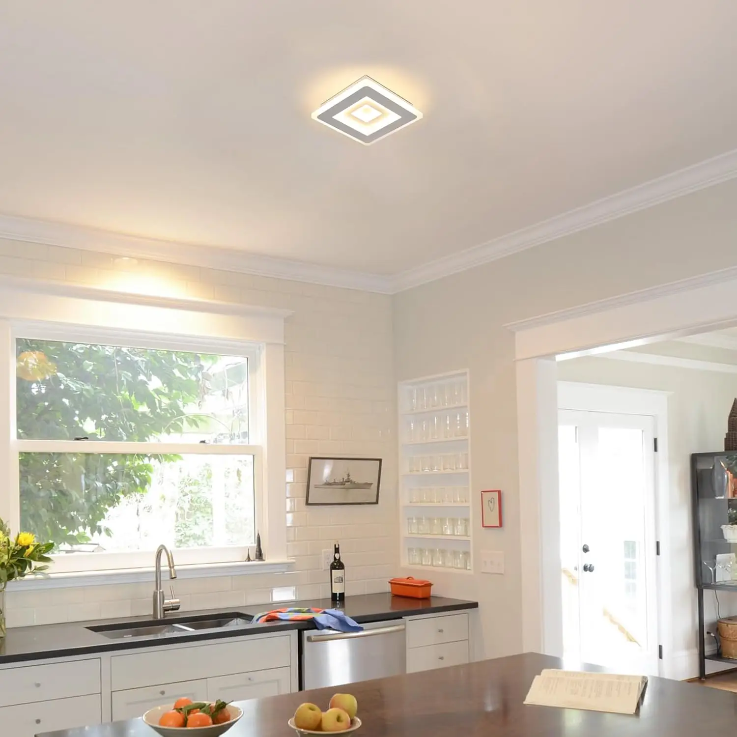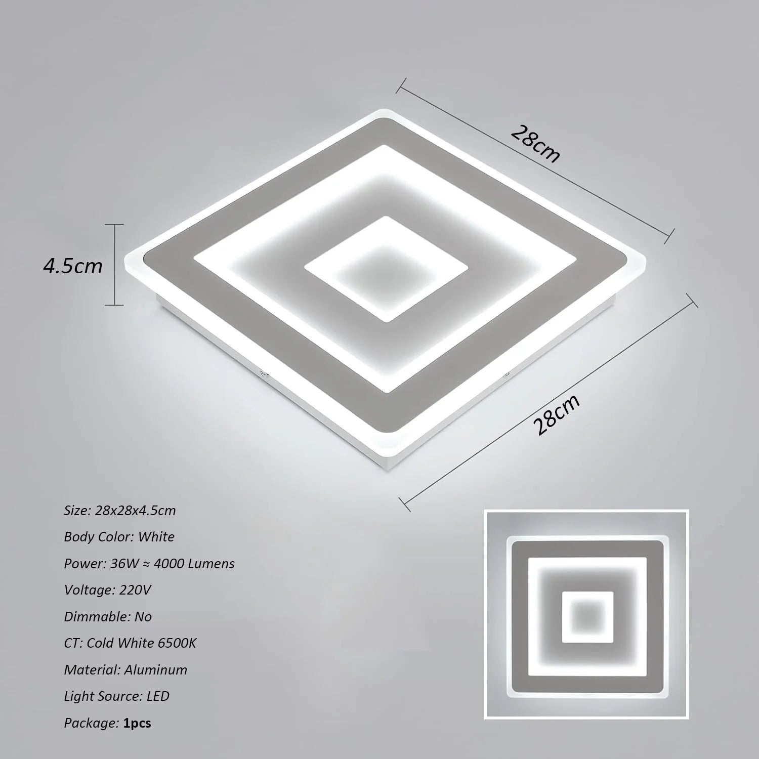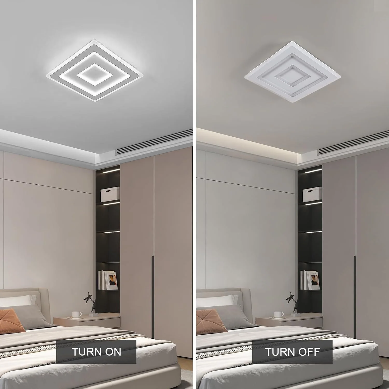 Modern Square LED Ceiling Light,28W Acrylic Ceiling Lamp,White Ceiling Chandelier for Bedroom,Living Room Warm Light 3000K