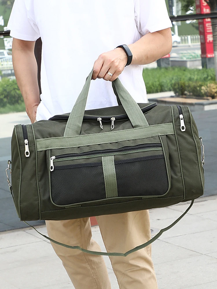 Features: 1. High quality materials: The hardware accessories on the bag body are all made of high-quality hardware, with a thick and heavy texture. After multi-layer electroplating process treatment, it is not easy to oxidize 2. Waterproof: Select high-quality fabrics that are waterproof, wear-resistant, and have a good feel 3. Adjustable: The straps on both sides of the bag can adjust the height of the bag according to your preferences, to meet your ideal needs. 4. Smooth zipper: Strong interlocking force between chain teeth, smooth feel when pulled 5. Convenient to use: The front small mesh bag can hold mobile phones, etc., and can be carried by hand, one shoulder or diagonal, giving you more convenient and stylish travel. Specification: Type of sports: Fitness Origin: Mainland China Department Name: Unisex Product material: Oxford cloth Product color: green, black (optional) Product size: 60cm/23.62in * 31cm/12.20in * 24cm/9.45in