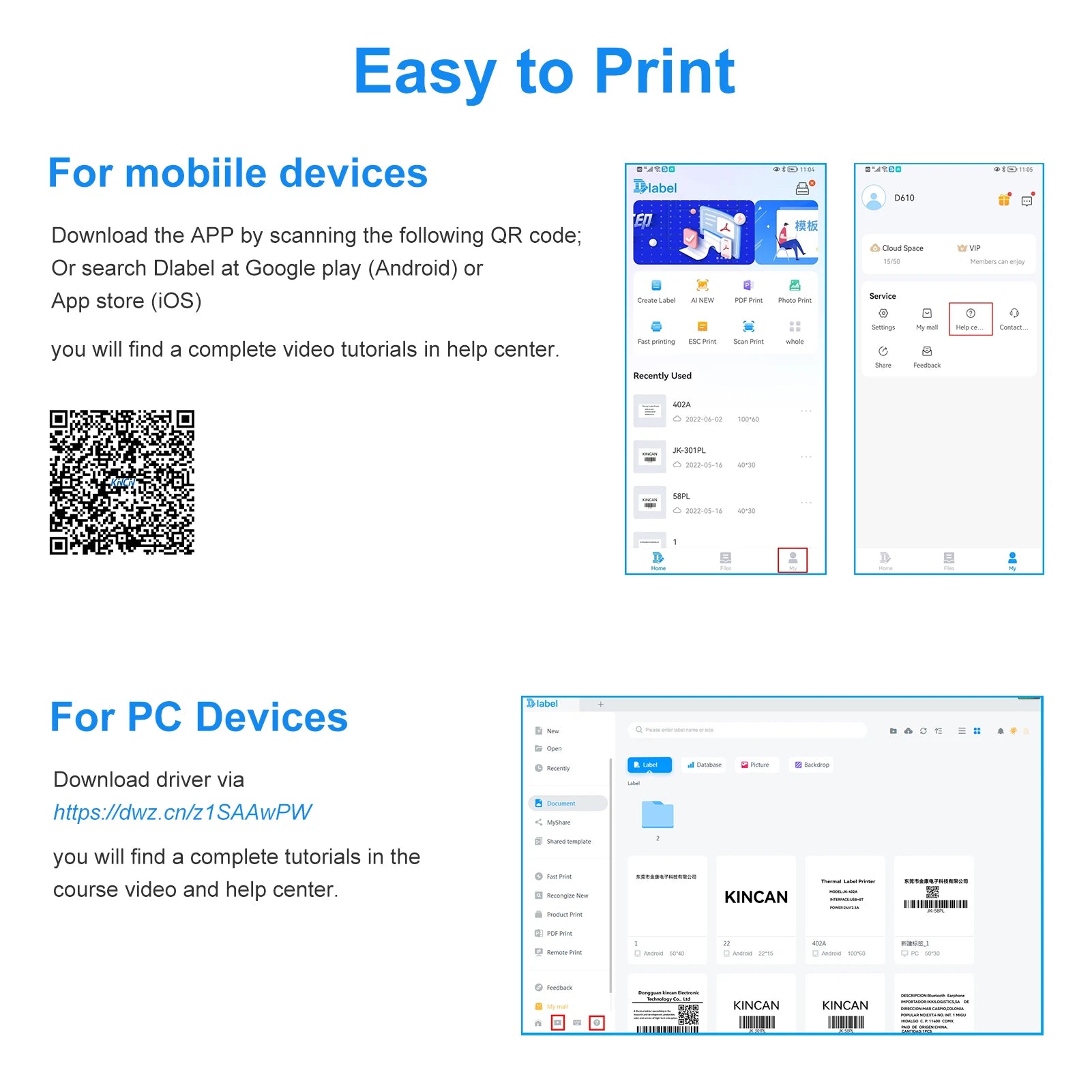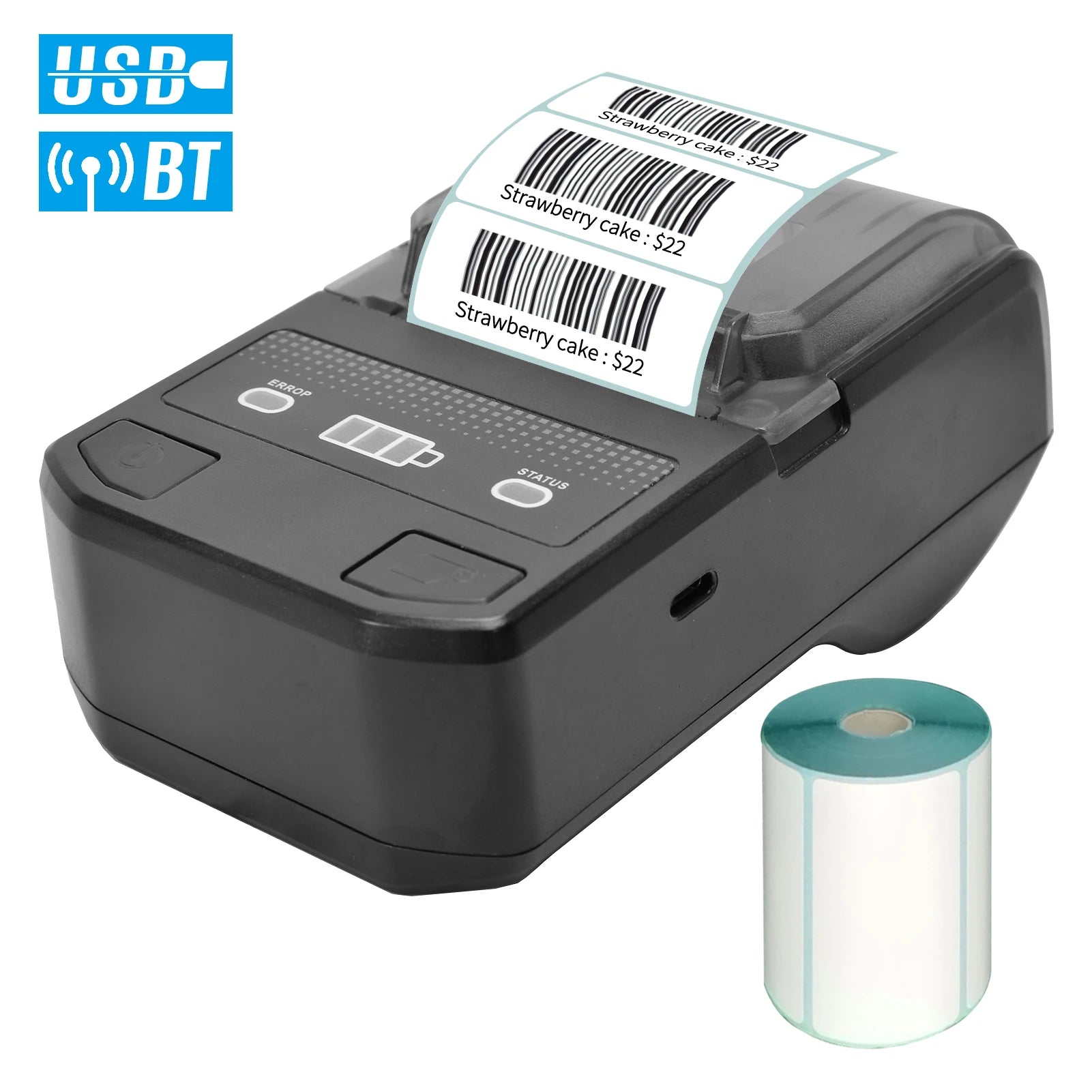 58mm portable thermal label printer, strong compatibility, support BT or USB cable connection, compatible with iOS, Android, Linux, Windows systems. Please download relative APP or driver on your devices.