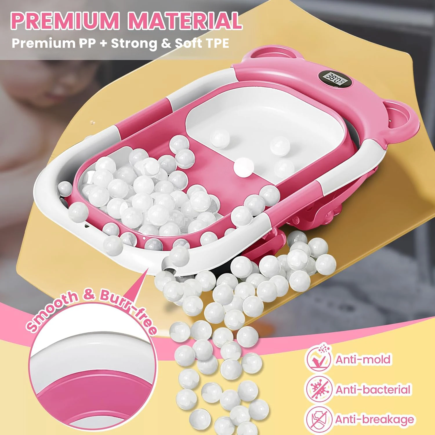 Premium Material——The collapsible bathtub is designed to accompany your baby from newborn to toddler(0-36 months) .Made with premium PP+TPE materials, our infant bath tub guarantees safety, resilience, and peace of mind. Odor-free and bite-proof, it’s gentle on your baby’s skin.