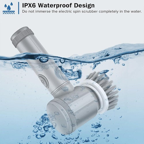 -Made from premium ABS material, it is lightweight and durable. IPX6 waterproof technology makes sure the electric cleaning brush works in water without being damaged.