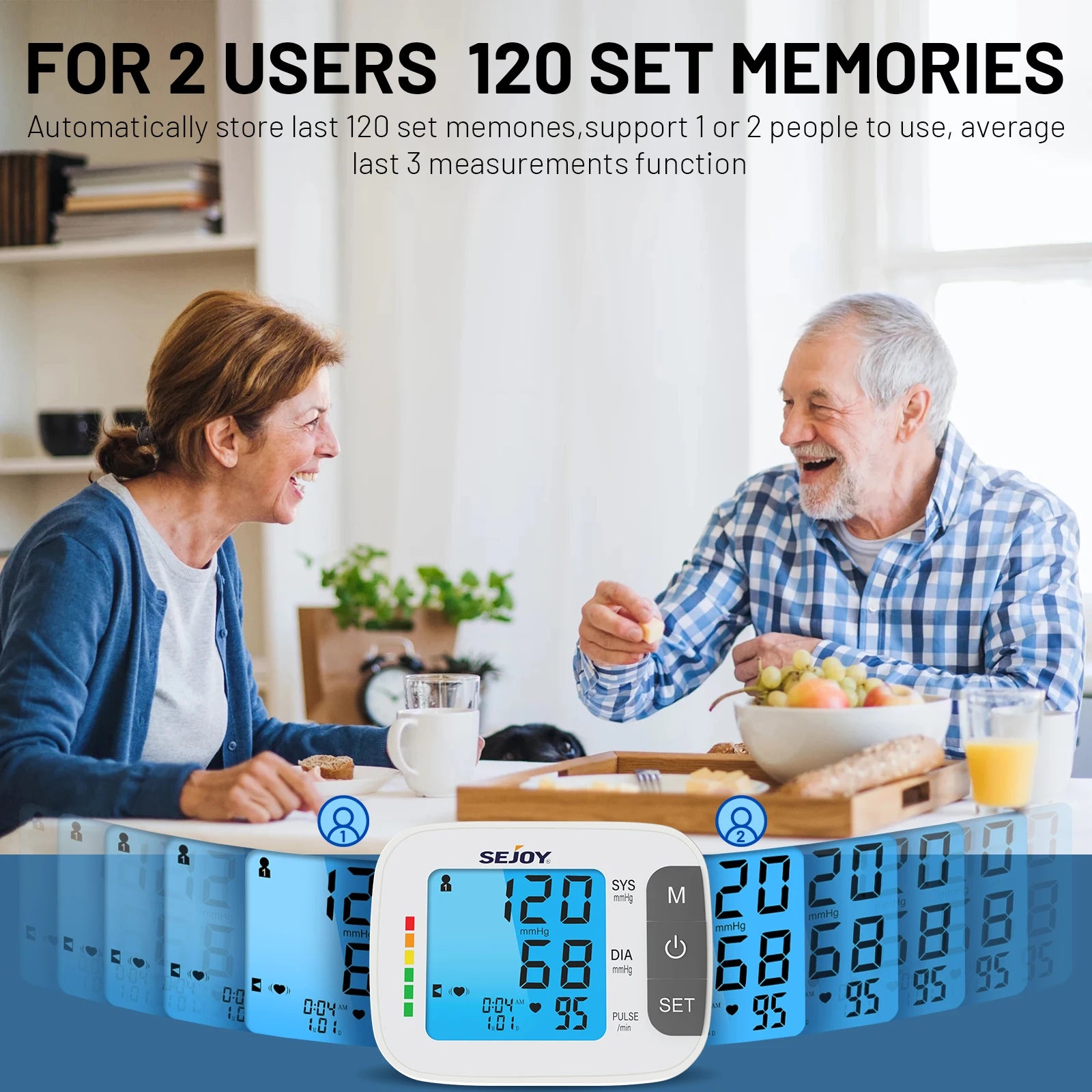 3. Memory : 120 memories in 2 groups with Date & time, easy to compare and follow.