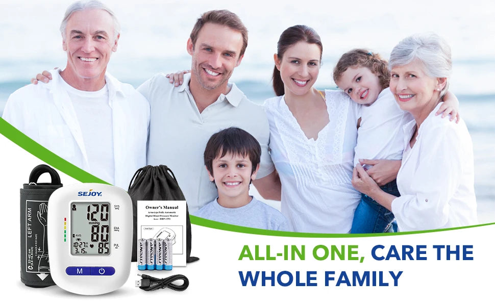 Sejoy DBP Blood Pressure Monitor Upper Arm Automatic BP Cuff Machine with LED Display for Home Use Health Care