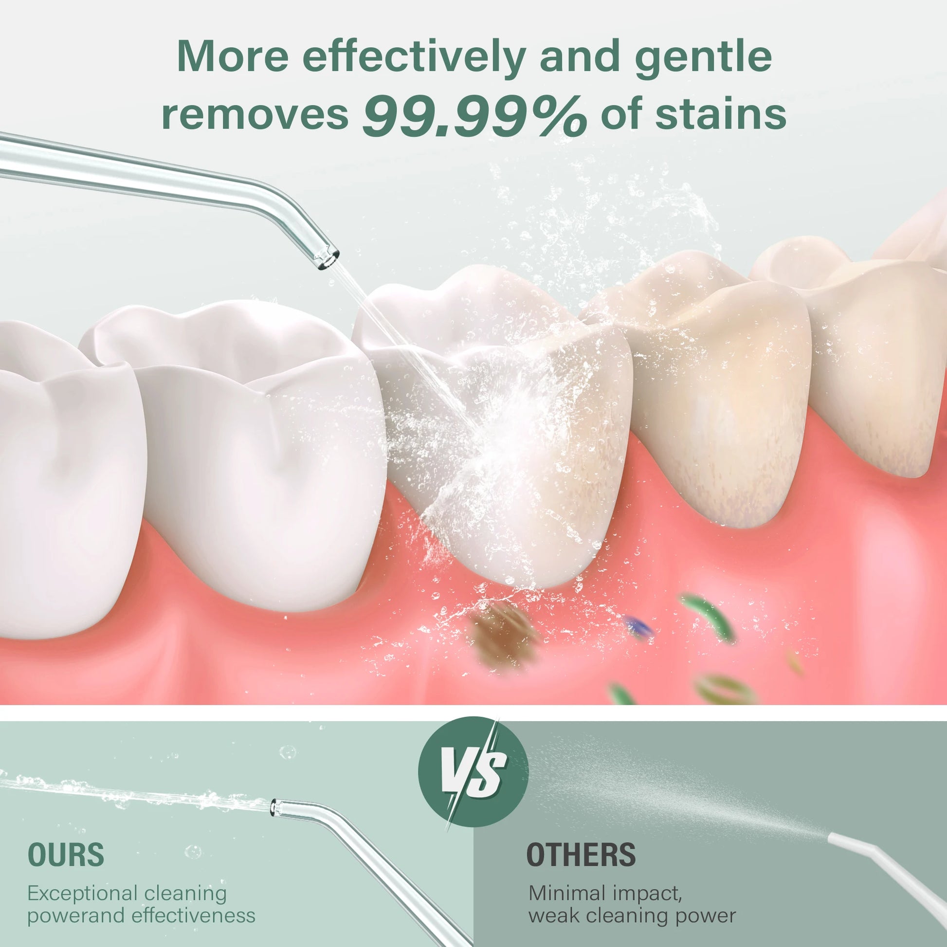 Our Water Dental Teeth Cleaner Pick adopts IPX7 waterproof design, which can be used safely for shower in the bathroom and washed under water directly for cleaning.